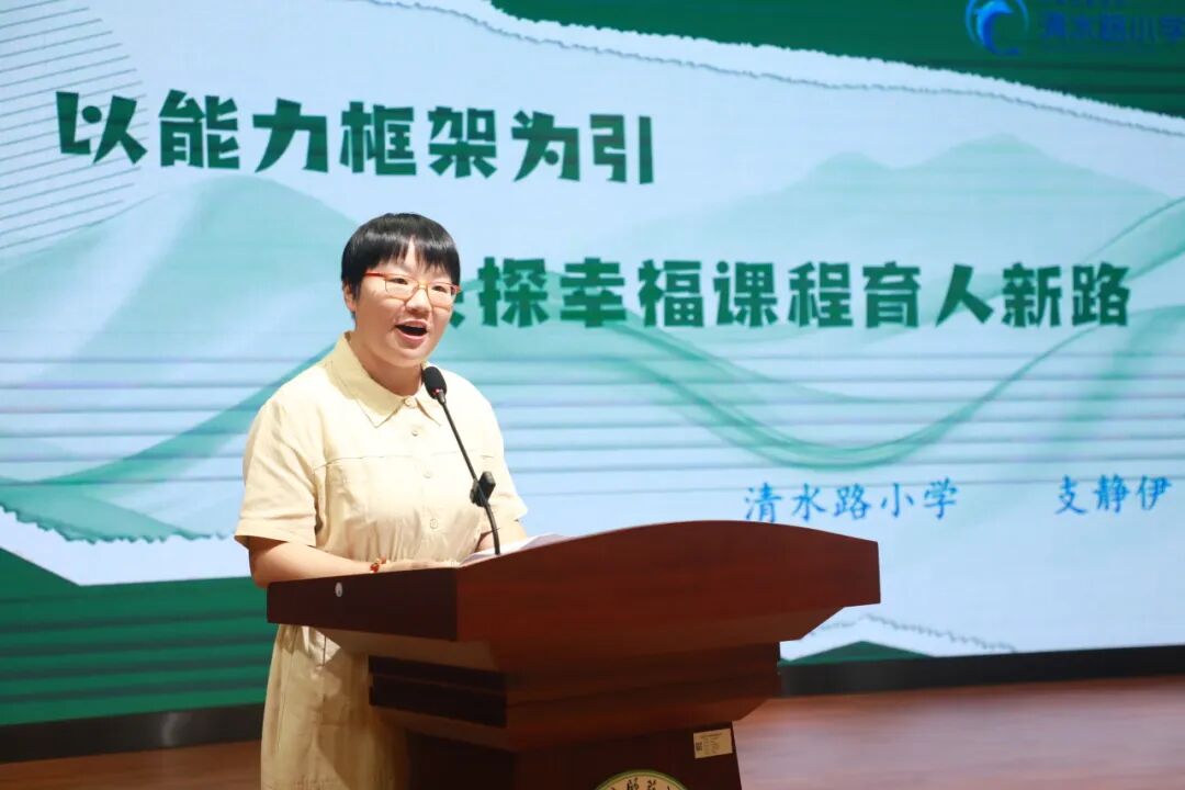 校际共研:多元路径探索育人新样态 在成员校交流环节,清水路小学支静伊老师以《以能力框架为引,共探幸福课程育人新路》为题,分享了学校整合“西大街项目群”,实现文化宣传、非遗传承与红色教育协同推进的集群经验。上师五实验王召侠老师则聚焦“劳动+思政”融合路径,介绍了体育课堂中“水稻丰收”情境的创设,展现了跨学科整合在实现“体能训练+劳动认知+品格培养”三重目标中的实践智慧。