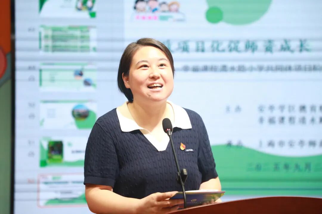 项目展示:从课堂实践走向文化育人 活动在安师附小杨洁老师执教的出项微课《追寻红色印记,传承英雄精神》中拉开序幕。该课程以纪念抗战胜利80周年为契机,引导学生通过寻访红色基地、梳理历史脉络,并融合校本非遗“药斑布”技艺,创作出兼具红色精神与艺术美感的作品。学生在展示中不仅分享成果,更对学习过程进行复盘与反思,充分体现了项目化学习在文化认同与价值塑造中的育人实效。 随后,安师附小党支部副书记马吉围绕“以项目化学习精耕思政课堂,赋能教师专业成长”的话题,作了阶段性汇报。她系统阐述了学校立足“非遗在校园”与中医药文化特色,构建“三层三阶”教师发展模式,推动教师在项目设计、文化塑造、跨学科协同等方面的能力提升。通过“药斑布”“中草药”等主题项目的梯度实施,学校实现了从“个体突破”到“团队共进”的良性发展生态。 在《从困惑到芬芳》的幸福故事环节,彭馨雨、高兰兰、杨俊杰、张金金四位教师依次分享了他们在项目化学习中的真实经历:从“无人问津的艾草皂”到“热气腾腾的寻味之旅”,从“失败的实验”到“成功的探究”,从“孤芳自赏”到“百花齐放”,再到“不可能的任务”化为“团队的奇迹”。这些故事生动呈现了教师在学生引导、情感支持、容错机制与跨学科协作中的专业成长。 滑动查看更多