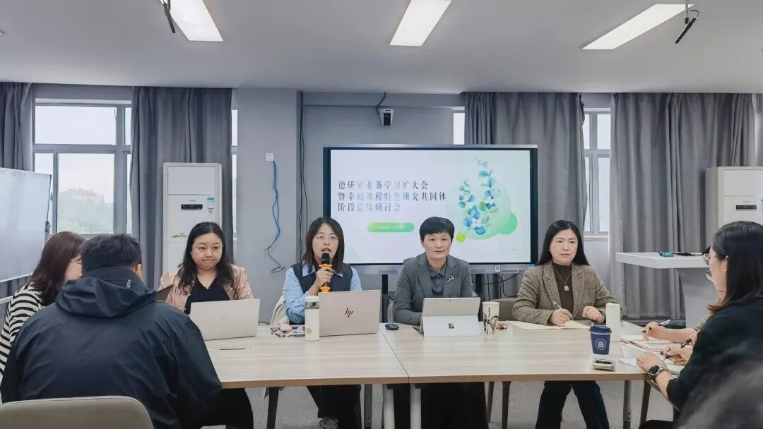 2025年11月7日,嘉定区德研室组织开展业务学习扩大会暨幸福课程特色研究共同体阶段总结研讨会,区教育学院副院长丁馨、德研室全体德研员、23所幸福课程领衔校分管领导齐聚一堂,总结阶段成果,共探发展路径,为幸福课程第三轮实施谋划方向,德研员赵云洁主持会议。