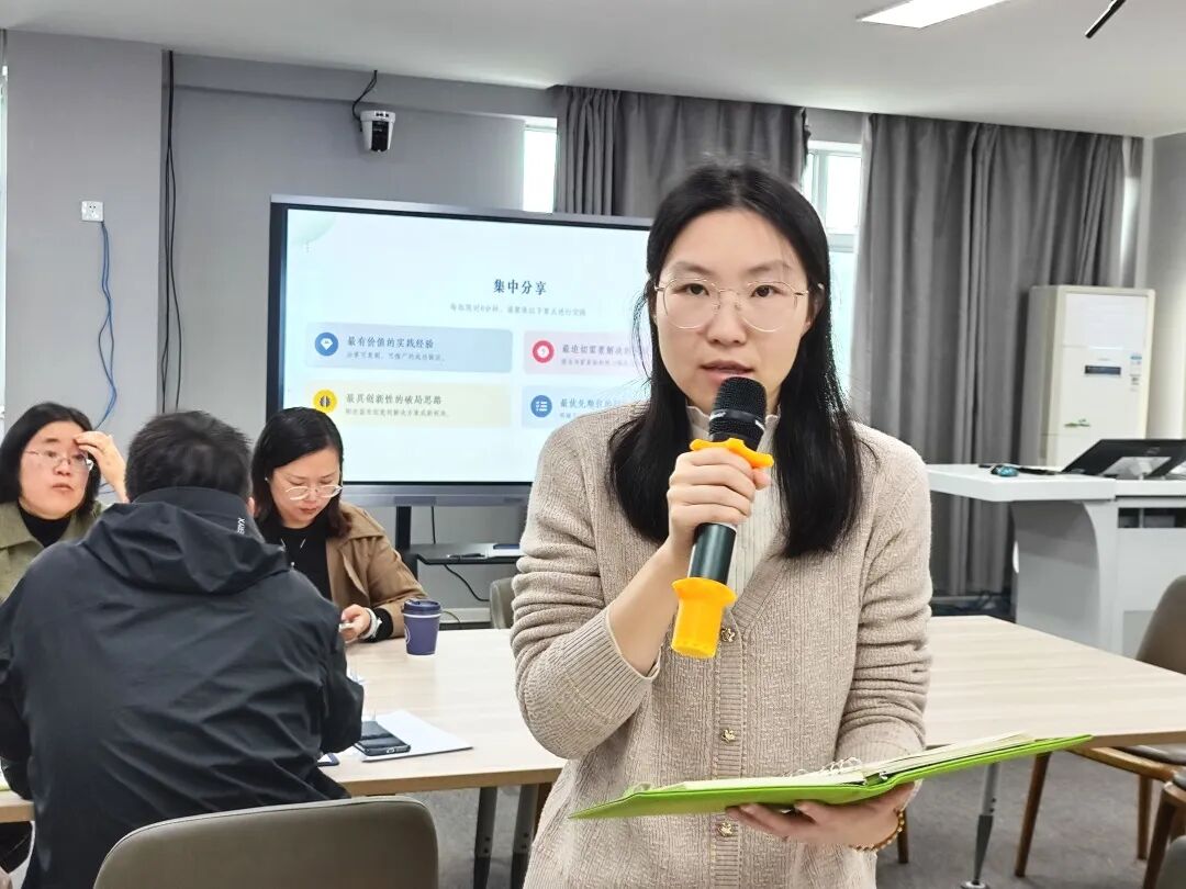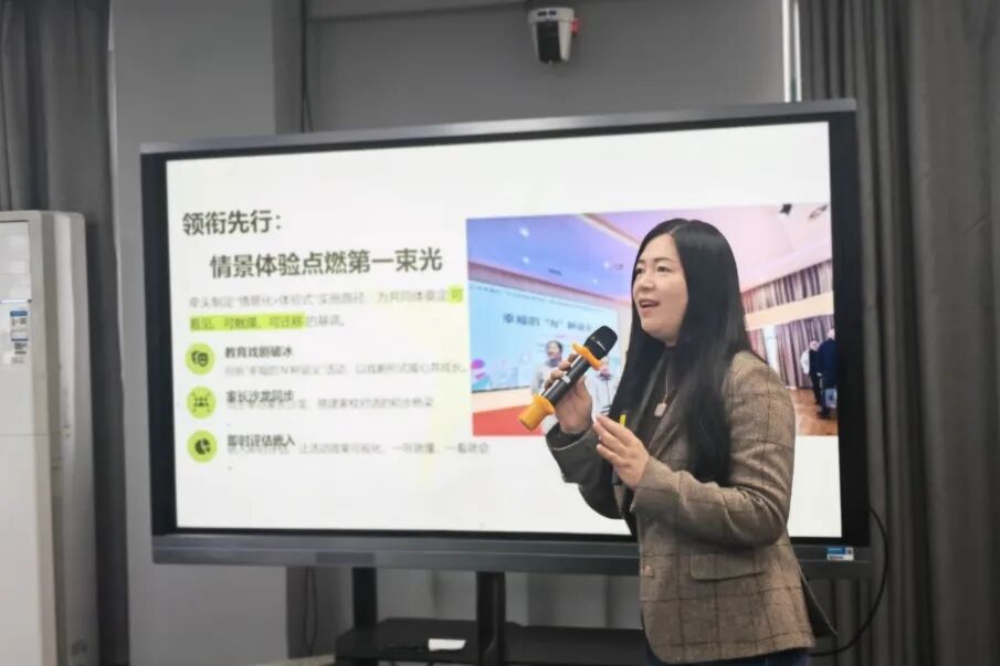 在经验分享环节,普通小学副校长张静艳以“寻光而聚,追光而行”为题分享了“‘情景化+体验式’学生积极特质评估”共同体研修实践,展现了幸福课程从理念走向行动落地的生动实践,也提供了可借鉴的共同体研修样态。