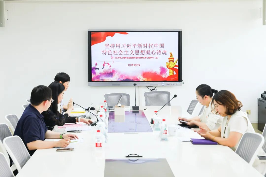 为深入学习贯彻习近平新时代中国特色社会主义思想,凝心铸魂推动事业发展,5月27日,区教育学院党总支开展理论学习中心组专题学习会议。区教育工作党委副书记、局长管文洁到场旁听指导。会议由区教育学院党总支书记、院长许晓芳主持。 深学细悟 筑牢思想根基 会议伊始,许晓芳书记以微党课的形式,领学了关于“坚持用习近平新时代中国特色社会主义思想凝心铸魂”的重要章节。她结合党的二十大精神,从理论与实践结合的角度,系统阐释了新时代党的创新理论的重大意义、科学体系和实践要求。许晓芳强调,学院全体党员干部要以此次学习为契机,始终牢记“教育是立德树人的根本事业”,以更高标准抓党建、更强担当促改革、更实作风惠民生,努力将学习成果转化为推动学院高质量发展的生动实践,以实干担当书写新时代教育答卷! 深研笃行 凝聚奋进力量 在学习体会交流中,丁馨同志以“凝聚思想共识,激发实干动能”为主题,结合分管领域工作谈学习体会。她表示,要将理论学习与攻坚克难紧密结合,以钉钉子精神推动重点任务落实落地。随后,秦惠康、汤杰两位同志分别结合各自工作实际,围绕党建工作与业务发展深度融合的议题展开讨论,进一步深化了对习近平新时代中国特色社会主义思想丰富内涵的领悟。 高屋建瓴 擘画发展蓝图 管文洁在总结指导中高度肯定本次学习的实效性,并提出三点要求:一要突出“深学”,持续深化理论学习,做到常学常新、常悟常进;二要立足“实干”,将学习成效融入高质量发展全局,以创新驱动破解发展难题;三要强化“担当”,学院领导班子要带头当好理论学习的“领头雁”,带动全体党员同志形成勤学善思、锐意进取的良好氛围。她强调,必须以习近平新时代中国特色社会主义思想为根本遵循,锚定时代使命,在新时代新征程中展现新作为。 此次学习会议通过“领学+交流+指导”的立体化模式,有力推动了党的创新理论学习走深走实。全体中心组参会人员一致表示,将以此次学习为新的起点,切实把思想和行动统一到党中央决策部署上来,以凝心铸魂的政治自觉推动事业高质量发展。