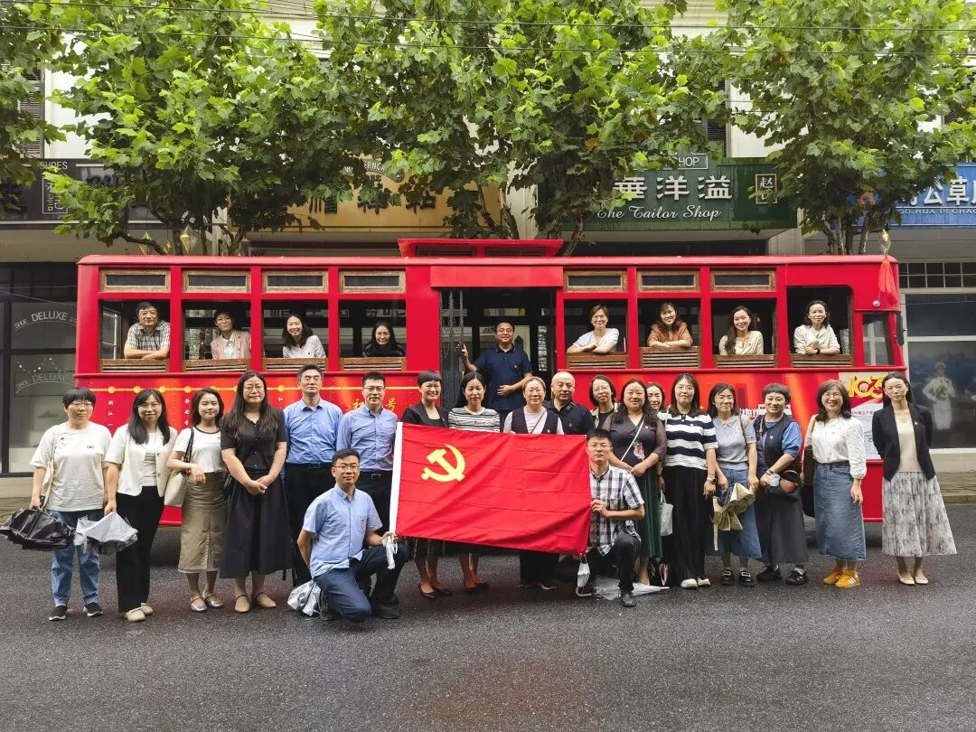 “初心号”启程: 从“光影坐标”到“精神原点” 上午9时,党员教师们一同登上印有“追寻红色足迹 践行初心使命”标语的红色巴士,载着党员们的期待与热忱开启了此次“红色之旅”。这辆被党员们亲切称为“初心号”的巴士,既是移动的“党史课堂”,也是串联红色记忆的“时光隧道”——巴士上的“乘务员”以“从银幕到现实:解码中国共产党的精神密码”为主题,结合上影基地“红色影视创作摇篮”的背景,为党员们讲述上影与党同频共振的发展历程,镌刻着几代电影人用镜头记录时代、用光影传承信仰的初心。 车窗外的城市风景渐次后退,车厢内的讨论热度持续升温。“原来许多经典红色影片的取景地就在我们身边!”青年党员赵明珠老师翻看着手中的《上海红色影视地图》,眼里闪着光。这场“移动党课”让党史学习从“书本”走向“窗外”,党员们在流动的风景中,提前触摸到了此行的精神底色。