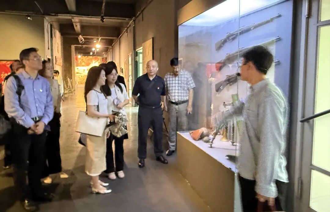 沉浸式体验: 在“历史现场”读懂“信仰密码” 走进上影基地“红色光影馆”,一场跨越时空的“对话”正式展开。党员们首先来到“抗战武器陈列馆”,锈迹斑斑的步枪、布满弹孔的军大衣、泛黄的电报手稿……一件件文物无声诉说着那段烽火岁月。“这是李白烈士使用过的电台零件!”在展柜前,党员们驻足凝视——这位“永不消逝的电波”里的英雄,曾用这部电台传递着生死情报。许书记轻声解说:“李白烈士牺牲时年仅39岁,他用生命守护的,是我们今天能看到的‘电波’里的春天。” 随后,党员们转场至“红色经典复刻区”,依次沉浸式体验“一大会址”“渔阳里旧居”“嘉兴红船”三大场景。在“一大会议”复原厅,木质长桌、褪色的茶盏、墙上悬挂的旧式摆钟,将党员们带回1921年那个开天辟地的时刻;走进“嘉兴红船”,讲解员讲述“烟雨楼台革命萌生,此间曾著星星火”的故事,党员们围坐在“船舱”,轻声诵读《共产党宣言》选段,齐声唱响《国际歌》,仿佛与百年前的青年们共享同一片星空。“这种‘代入式’体验太震撼了!”老党员沈国全老师摸着复刻的“一大”会桌感慨,“以前学党史更多是记时间、背事件,今天站在‘现场’,才真正理解了什么是‘开天辟地、敢为人先’的首创精神。”