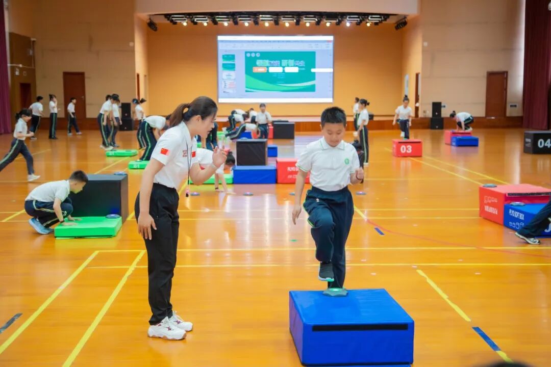 课堂实践,聚焦素养培育 活动伊始,外冈小学钱有阳老师带来五年级“体能9-(7)协调性、肌肉耐力、位移速度”微课展示。教学中通过组合跳箱与光电球智能教具等器材的辅助,使数字化更加科学合理有效的融入学练之中,将协调性练习与游戏化情境融合,引导学生在趣味挑战中提升体能素质。 随后,闵行区实验小学许嘉伦老师进行二年级“体能 9-(5):反应能力、位移速度、心肺耐力”模拟教学,以“奇幻游戏快乐体能”为主题,通过创新器材运用与多样化游戏设计,引导学生在观察、思考和实践中主动参与体能练习。