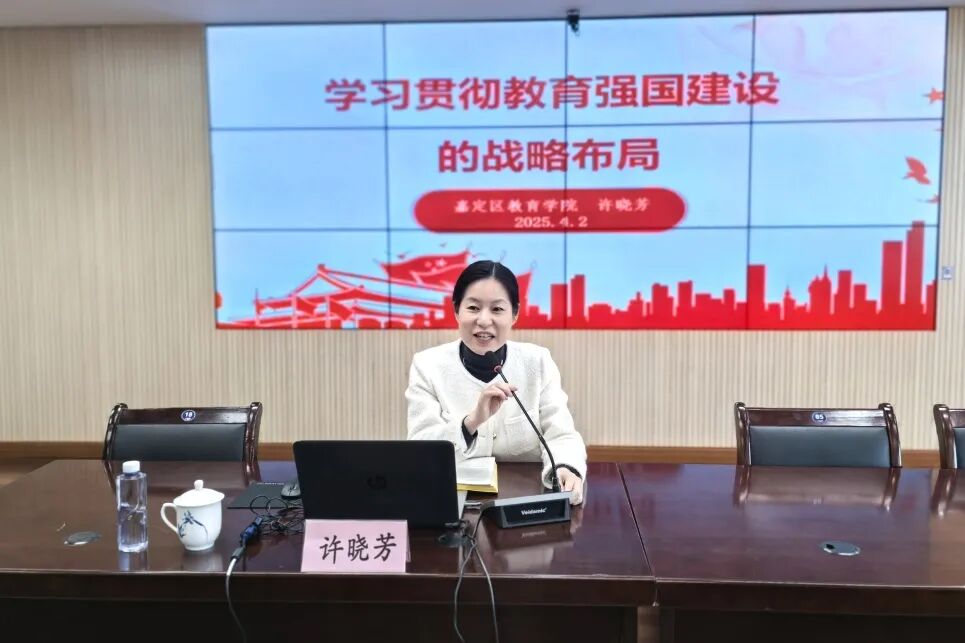 悟,教育之责 4月2日下午,嘉定区教育学院党总支书记、院长许晓芳作《学习贯彻教育强国建设的战略布局》的专题讲座。许晓芳基于政策溯源,引领学员站在实现第二个百年奋斗目标的高度,深刻理解《教育强国建设规划纲要(2024—2035年)》对落实党的二十大部署,更好发挥教育强国建设在全面推进强国建设、民族复兴伟业中的先导任务、坚实基础、战略支撑作用的重要意义。她结合嘉定实际,从战略逻辑、科学内涵、重点任务和责任担当四方面作出具体指导,强调要坚定中国特色社会主义教育的政治性、人民性、战略性“三大属性”,紧紧围绕教育强国思想引领力等“六大特质”,正确处理好支撑国家战略和满足民生需求等“五大关系”,深刻领会和主动对标高质量教育体系的建设要求和重点任务,思考和践行学校管理者在推动学校高质量发展、培养造就新时代高水平教师队伍、培育学生五育融合发展等方面的责任担当和应有作为。