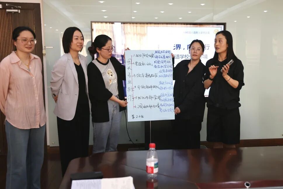 行,发展之道 4月18日下午,嘉定区教育系统“嘉盈工程”“嘉星工程”管理研修班(首期)读书沙龙活动在嘉定区教育学院举行。区教育学院教师教育处主任颜晓莉出席活动。全体学员基于自身学校管理工作,结合《关于建立中小学校党组织领导的校长负责制的意见(试行)》《加快推进嘉定区教育高质量发展的实施意见(草案)》等文件精神,分组交流学习成果。 嘉盈班:卷中撷慧 行远思深 嘉盈班学员聚焦“六大”校(园)长专业标准,以小组为单位,从跨界共生、文化知行、保教变革、弘扬教育家精神、管理创新、技术赋能等不同视角,分享共读专业标准的教育哲思与扎根学校实践的践悟,并通过思维导图、策略图谱等创意形式,直观呈现了本次沙龙活动的学习获得。 嘉星1班:聚焦专业标准 升维管理思考 嘉星1班学员立足岗位实践,从贯彻党的教育方针、融通多方资源、推进“双新”实施、促进技术融合、夯实民主共治等学校高质量发展的核心要素,交流了自己对提升校长领导力的系统思考。 嘉星2班:学标准 强担当 领变革 嘉星2班学员分三大学段进行交流:学前教育组围绕“园长如何以专业标准赋能团队发展”进行微演讲,义务教育组以微论坛形式分析“新时代校长的挑战与突破”,高中及其他组强化“破墙”思维,探析“驱动办学能级提升的创新策略”。最后,学员们用简短而真挚的文字在“书香卡”上沉淀思考,漂流共享。