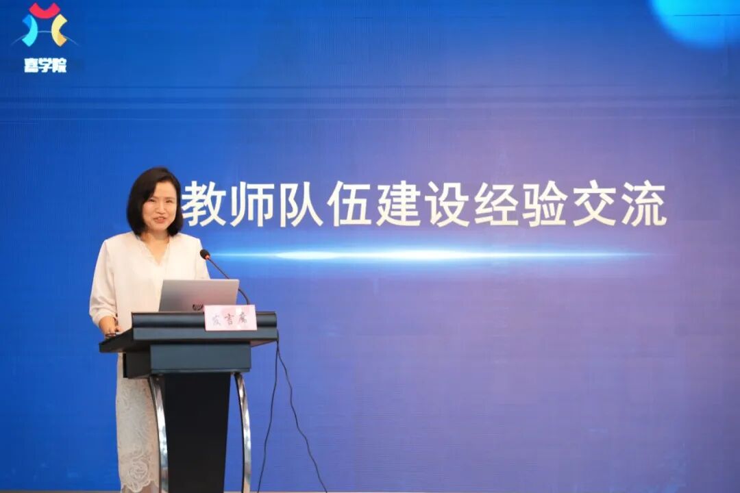 许晓芳指出学校经验分享呈现出“有问题导向的攻坚意识、有特色发展的创新意识、有文化滋养的内生动力”三大亮点,并勉励师训主任做好学校校长的得力助手,主动承担教师队伍“规划者”与“设计师”角色。她对学校教师专业发展工作提出四点期望:一要关注教师身心健康,提升教师职业幸福感、成就感;二要精准施策,构建分类分层分岗的教师发展体系;三要创新校本研修模式,强化实践导向与学后转化;四要加强青年教师、骨干教师、名师校长队伍的培育与辐射,推动教师队伍建设提质增效。 颜晓莉以《聚焦精准赋能,强化系统管理》为题,回顾2024学年干部队伍建设、教师队伍建设、研究与指导三方面的工作情况和成果成效,并从人才梯队培养与管理、师训课程资源建设、专项研究、学分管理四个模块规划新学期重点工作。 上海师范大学附属第五嘉定实验学校陈勇校长聚焦教师专业发展与课程教学变革,从教师观、学生观、课程观、学习空间建设等角度分享了以“儿童大学”理念构建教师专业体系的创新实践路径。 上海市曹杨二中附属江桥实验中学陈茜副书记聚焦教师评价中诸如评价导向偏差、跨校区协同低效等典型问题,介绍了学校通过构建“一核六维三径”教师专业成长“导航系统”,促进教师与学生共同成长。 嘉定区博翔幼儿园单凤园长分享了如何通过“洞察需求、倾听声音、赋能成长”三维模型,支持青年教师专业成长。