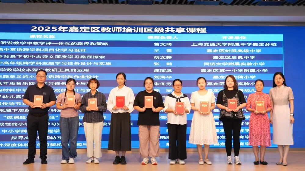 许晓芳为2025年嘉定区教师培训共享课程负责人代表颁发证书。 区教育学院和全区各校将继续以教育家精神为引领,以“四维五阶”领航计划为核心指引,以校本研修和系统管理为抓手,持续优化教师专业发展路径,做好系统管理的执行者与精准赋能的支持者!