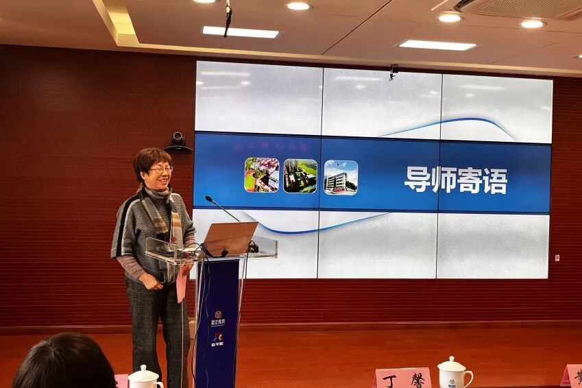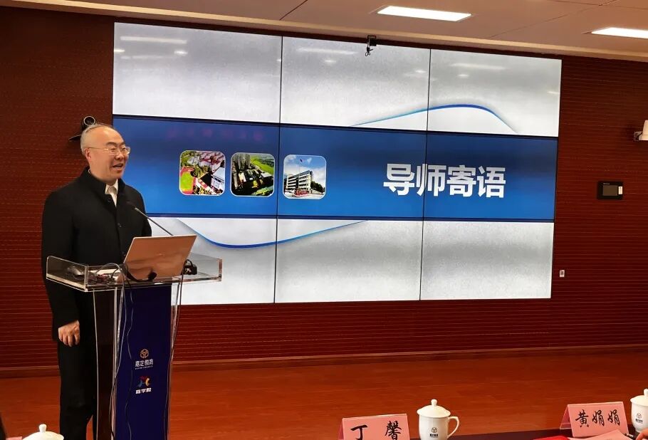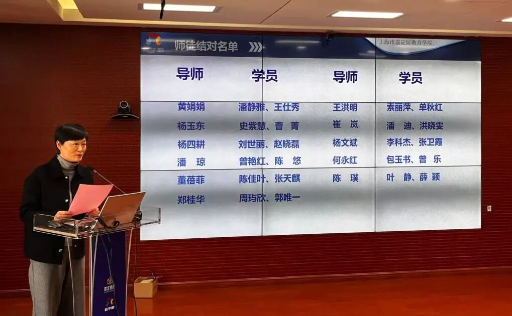 嘉定区教育学院副院长丁馨宣读师徒结对名单,对学员们提出了三点要求和期待:一是高质量完成课题研究,二是通过培训提高科研素养,三是主动反哺学校,带动学校科研发展。