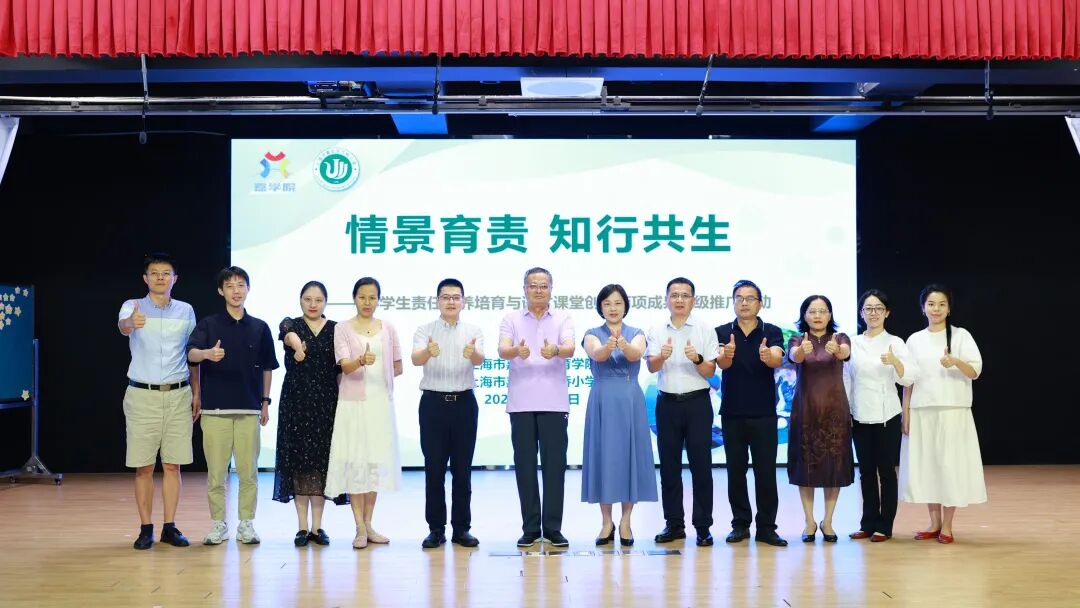 专家指导:育责润心 行稳致远 顾志跃院长对学校以真实情境驱动素养教育的创新实践给予高度评价。他称赞学校真正落实了立德树人的根本任务,将责任教育浸润人心。将黑板无人擦等日常事件转化为教学资源,通过新闻采编、播报等真实场景,以学校生活为活水,打破学科边界,实现课堂与责任教育、空间的有机融合,激发了教学方式的变革。师生互动中学生眼中有光,正是学生主体性被激发的生动体现。同时顾院长还指出了深化研究的方向,为成果的后续实践探索提供了新思路。