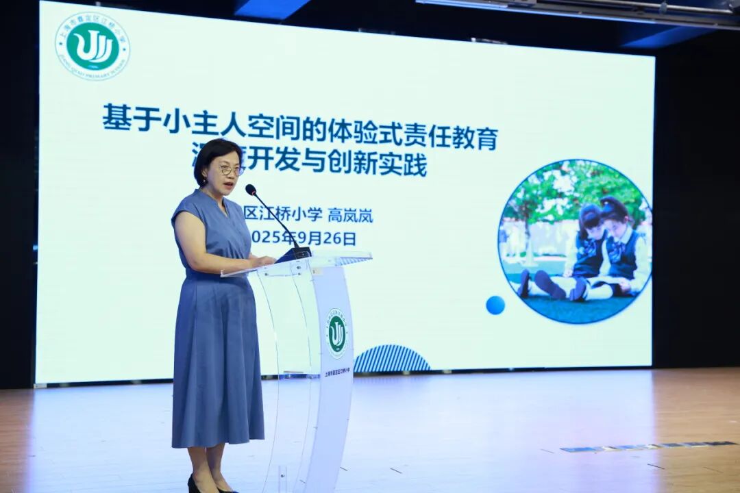 领导讲话:循时育才 破局立新 汤杰副院长肯定了江桥小学在育人方式上的积极探索,展现了江小的智慧和担当。两项成果紧扣时代脉搏,聚焦学生素养,是对当下五育并举的生动回应。他希望学校进一步加强课程整合与跨学科的融合,深化评价改革,尤其是过程性评价和增值性评价,继续推动成果区域化推广和校本系统化的创新。他以此活动为契机激励教师持续深耕,为嘉定教育高质量发展注入更多的智慧与活力。