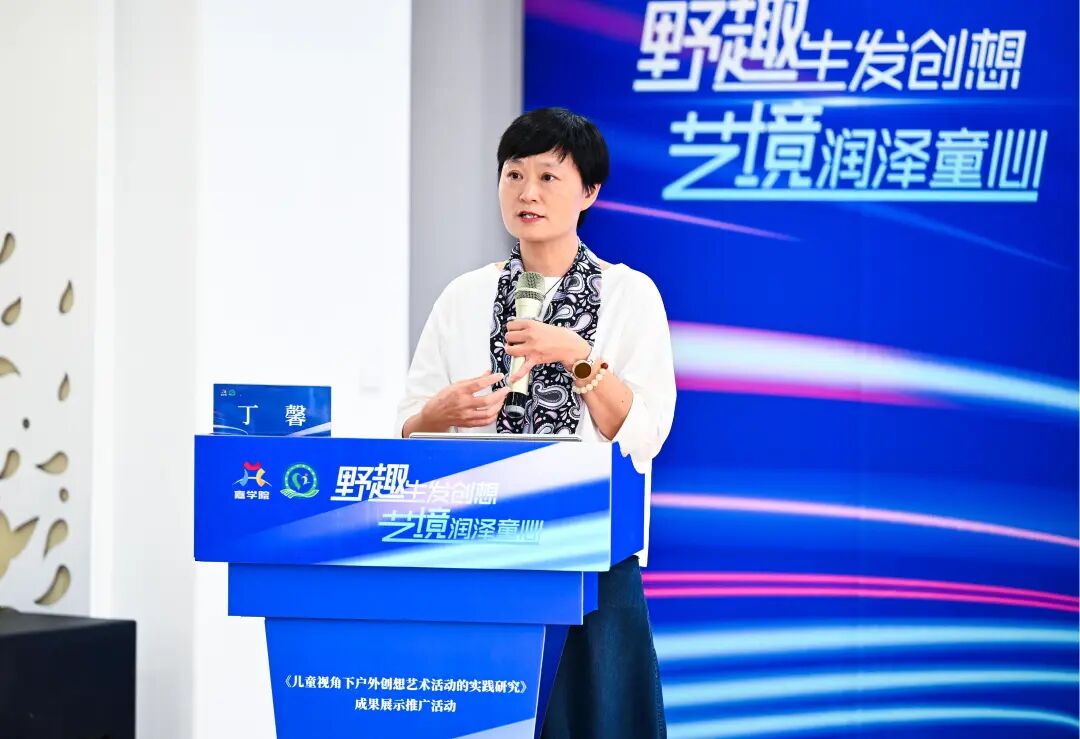 领导讲话,勾勒当下与未来 丁馨表示,本次活动让她切身感受到了“野趣”“艺趣”与“童趣”的美好融合,并用“三个关键句”分享了她的主要观点。一是感谢昌幼团队的默默深耕和专家的一路引领,让理念照进现实,勾勒出了一所幼儿园独特的“办学画像”。二是清晰的实施框架、有效的活动设计策略以及立体的评价方法等,不仅让研究达到了预期,更形成了一套富有成效的实践体系。三是老师们的经验分享和现场的幼儿表现,生动地诠释了何为“儿童视角”。展望未来,她提出“三点期望”,一是持续深化儿童视角,让研究主体回归儿童本身,让“儿童的画”与“儿童的话”发声,让每个活动都成为儿童“想说、想做、喜欢做”的“童心工程”。二是搭建多元共享平台,让成果辐射更多园所,惠及更广阔的教育实践。三是期待大家以此为基础,探索可持续发展的研究路径,让成果持续 “生长升级”。
