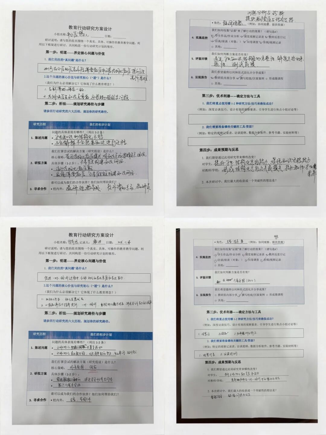 深互动启迪个人思路 骨干班学员带着问题“这所学校是如何将研究融入日常的?”进行了一日观察,从物质和文化层面感受行动研究的氛围,直观了解学校层面的推进机制,并结合主旨报告,尝试设计了行动研究方案,积极与专家互动。