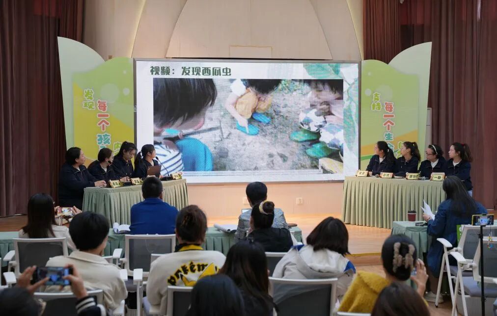 联合教研,深度解析支持力 浩翔幼儿园教研团队开展了《在自然里看见儿童——幼儿行为解读现场微教研》,展示了教师如何既要有放手留白的勇气,给予儿童探索的空间,又需具备精准点睛的功力,在“观察、识别、分析、回应”中读懂儿童亲自然外显的行为表现,挖掘隐性的经验获得与情感需求,以“倾听、解读、转化、支持”的核心路径实现儿童在自己的节奏中进行自然观察探索、自然体验操作、自然认知学习、自然审美表达。