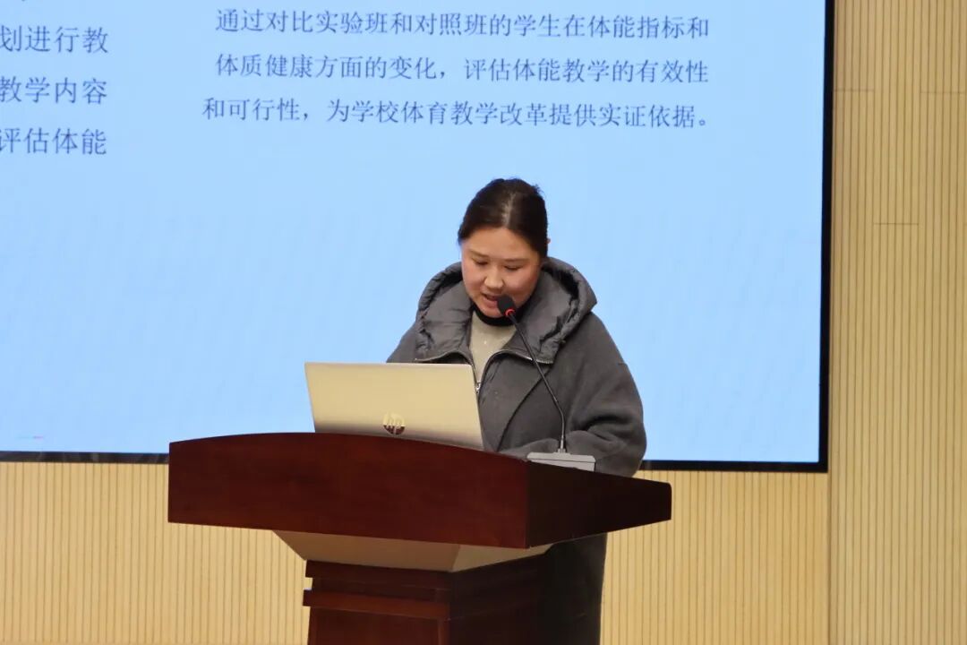 普通小学白银路分校的戴月芳老师以《“双新”背景下小学体育体能教学实践与成果》为题,对大单元教学中的专项体能教学进行经验分享。戴老师基于大单元体能教学的研究,从学生实际出发,将体能训练内容进行系统整合,针对不同阶段设定明确的教学目标,让学生在趣味学习中提高体能。