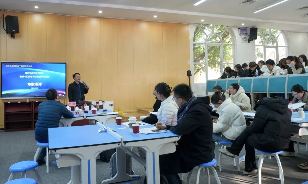 2025年3月6日,嘉定区高中物理教研团队以“素养本位的学习任务设计与实施”为主题,在上海师范大学附属嘉定高级中学组织教学研讨活动。全区高二物理教师、徐蓓蓓周上游名师工作室成员、攻关基地教师及上海师范大学师生代表等百余人齐聚一堂,通过课堂实践、经验共享与智慧碰撞,生动诠释了教研领导力中学习力的多维实现路径,为区域教育生态优化提供了实践范例。