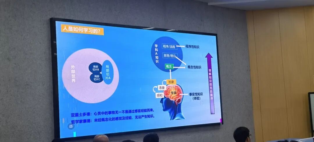 四、专业引领: 学习科学视角下的教研重构 作为活动的理论升华,严明老师以“人是如何学习的”理论为根基,深入阐释了教研领导力的学习力基础: 实验不可替代:通过对比分析指出,学生通过DIS传感器亲手采集数据时,对物理概念的理解深度显著提升,印证“具身认知”理论的教学价值; AI辅助功能:如何借助 AI 对两堂公开课生成教学设计、学生参与度等维度的结构化评价,以及 AI 辅助生成 PPT 的过程,为智能时代教学中技术融合提供实践思路。 这一讲座不仅为技术融合教学提供了理论支撑,更启发了教研活动的组织逻辑——让每一次教研都成为基于证据的改进实践。
