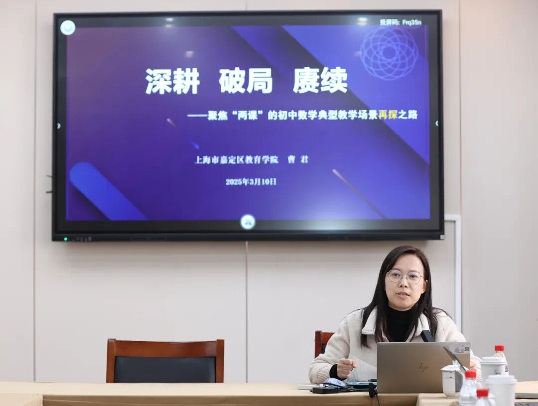 上海市嘉定区初中数学教研员曹君老师指出,通过“实践-提炼-反思-示范”构建教研闭环,提出数学教学应聚焦“思、辨、问”,培养学生的思维能力、辨析能力和主动提问能力。 上海市嘉定区初中物理教研员程献生老师指出,为解决当前碎片式、流水式复习以及班级内学情差异较大等问题,教学时要关注单元的结构化和实验操作,采用学习支架、任务分解的方式,推动合作学习,尝试学科交叉,布置分层任务。 上海市嘉定区初中英语教研员江佳玮老师聚焦初三英语练习讲评课中讲什么、怎么讲、怎么练、怎么测等关键问题,提出改进建议:在有限时间内解决有限问题,精准定位学生问题并持续跟踪,通过一题多变、精巧设计题目,满足不同层次学生的学习需要。