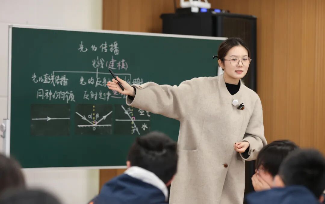 嘉定区苏民学校李百勉老师执教的数学展示课《圆背景下的锐角三角比问题(二)》以“自主命题反刍策略”为核心,引导学生从“被动解题”转向“主动创题”。课堂聚焦圆背景下锐角三角比问题,通过小组合作命题、解题、评题三环节,突破学生综合题解题障碍。学生以“圆中弧上的点”“弦的交点”为命题切入点,结合垂径定理与“四等定理”,设计分层题目并现场优化,将解题路径与圆的性质深度融合,实现“以法命题”的思维进阶。课堂尾声,李老师总结圆背景问题的通用策略:“找关键要素—构图转角—定量到定性”,助力学生从“技法”迈向“道法”。 上海师范大学附属第五嘉定实验学校何倩老师以“光路旅程”为情境主线,串联光的直线传播、反射与折射知识。学生借助激光笔、水槽等工具动态演示光现象,通过“探究凸透镜成像规律”实验视频,深度剖析操作问题(如物距调节偏差)。在解决“照相机拍摄集体照”“近视眼成像原理”等生活化问题时,学生结合DIS实验数据与类比模型,提炼“审题—分析—解题”三步法,将抽象规律转化为解题逻辑。课堂充分体现“做中学”理念,学生小组协作完成单元知识网络图,实现零散知识的结构化整合。