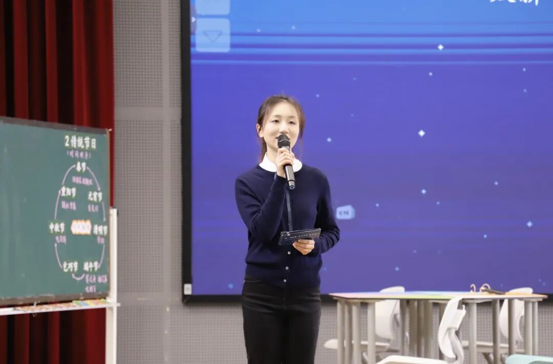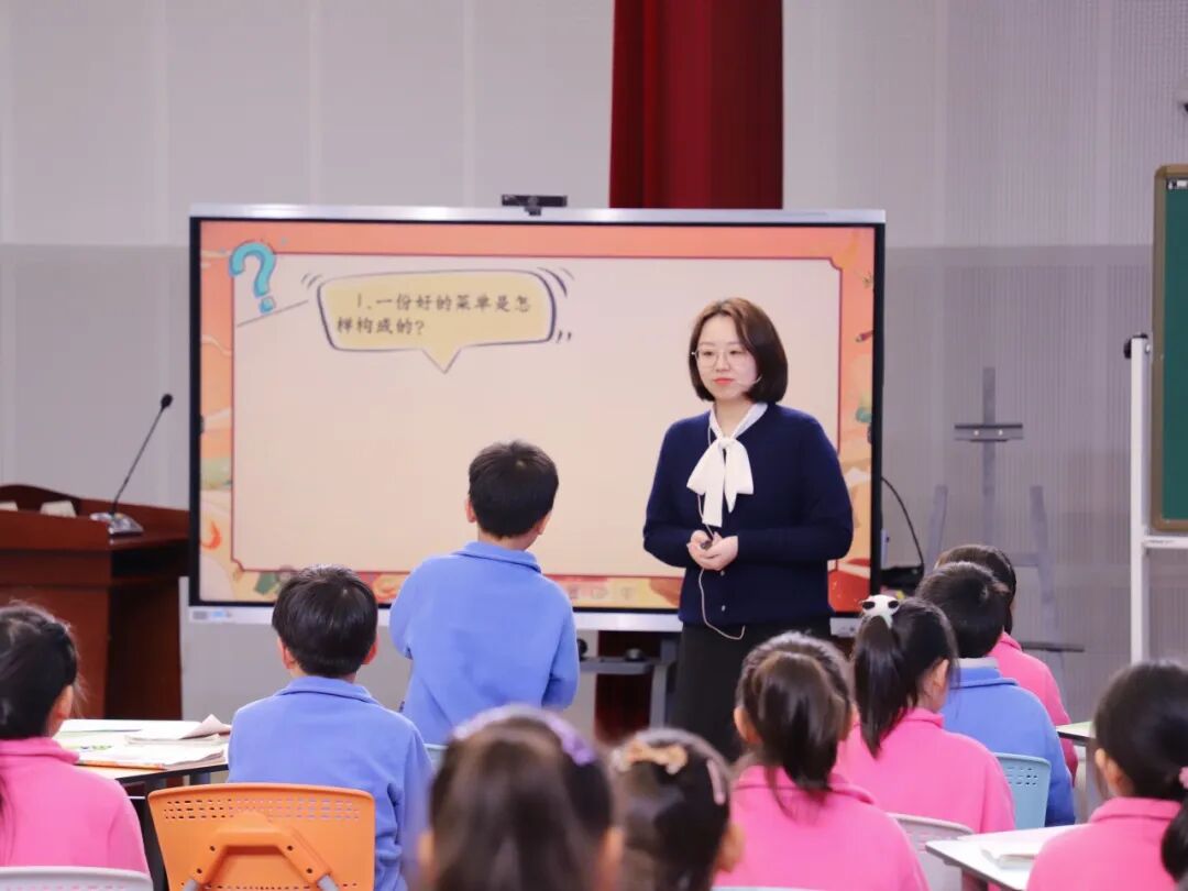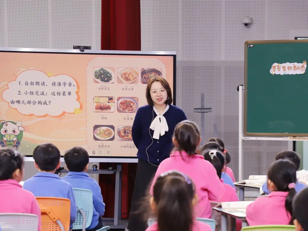 共探:基于项目融合的课堂教学实践 陆陈纯老师执教了《传统节日》一课,重点展示了其中半课时的入项探索过程。课前,陆老师引导学生借助“传统节日调查单”自主搜集节日美食资料,挖掘美食背后的文化内涵;课中,发布“假日小队美食分享会”任务,抛出项目化学习的驱动型问题,引导学生通过小组讨论提出设计菜单困惑,如菜单构成、菜品选择及菜单吸引力等子问题。整个设计以学生真实问题为起点,采用“分享—提问—归类”的递进式学习方式,将传统文化认知转化为实践能力,兼顾了低年级学情特点,确保语文学习既有趣味性又富含思维深度。 冯舒怡老师执教《中国美食》一课。作为知识与能力建构课。冯老师围绕入项课中提出的子问题展开,将教材资源用好、用透,通过“三读”菜单,在充分利用形声字的构字规律,自主识记和归类汉字的同时,帮助学生初步了解一份好菜单的不同构成维度。 两节课以项目化教学为抓手,革新语文课堂生态,转变学生学习方式,课堂活力满满,展示了许多宝贵的教学新思路。