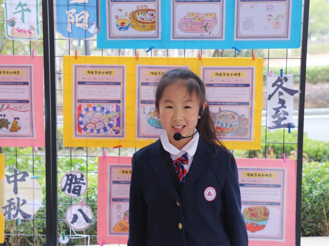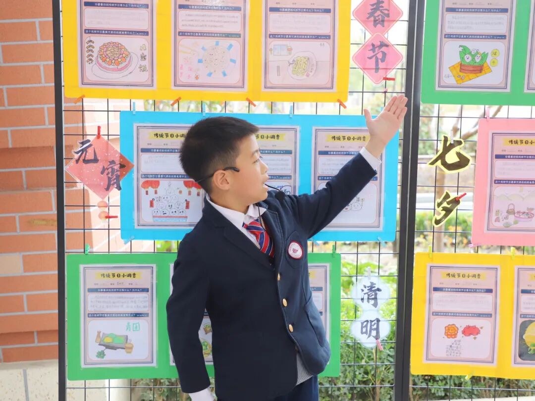 童享:“我的假日小队美食分享会菜单” 走进学校连廊,学生们正在分享自己的项目化学习成果呢!他们把成果分成了“传统节日小调查”“生活中的菜名”“传统节日美食分享会菜单”三个板块,两两组合,分工配合,自信地向老师介绍自己和伙伴在项目化学习中共同完成的活动菜单,还介绍了自己在探究不同中国美食菜单过程中认识的新字、设计的有趣菜名等。