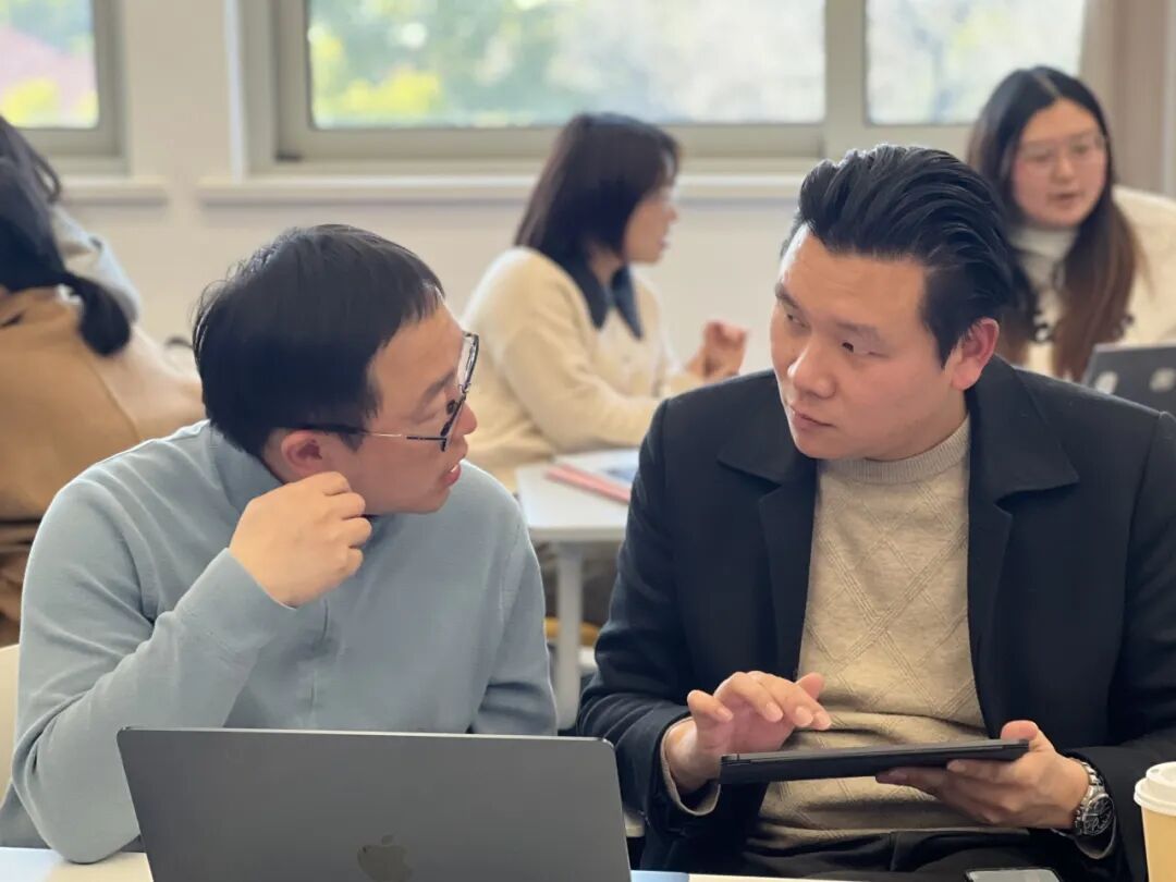 秦惠康老师进一步明确了教材修改的思想与要求,并与大家共同探讨了如何在高中阶段开展学术写作、如何通过搭建脚手架辅助学生提升思维能力等问题。随后,与会教师就自己在试教过程中的收获和困境进行了分组分享,进一步打磨单元资源。