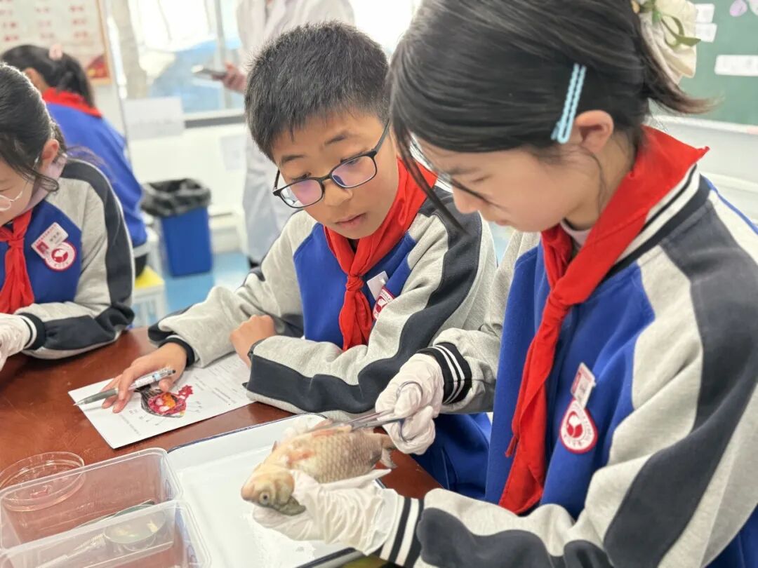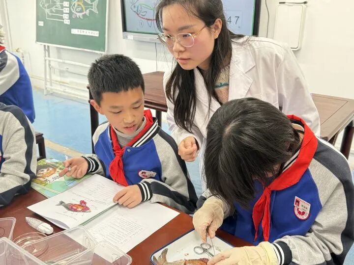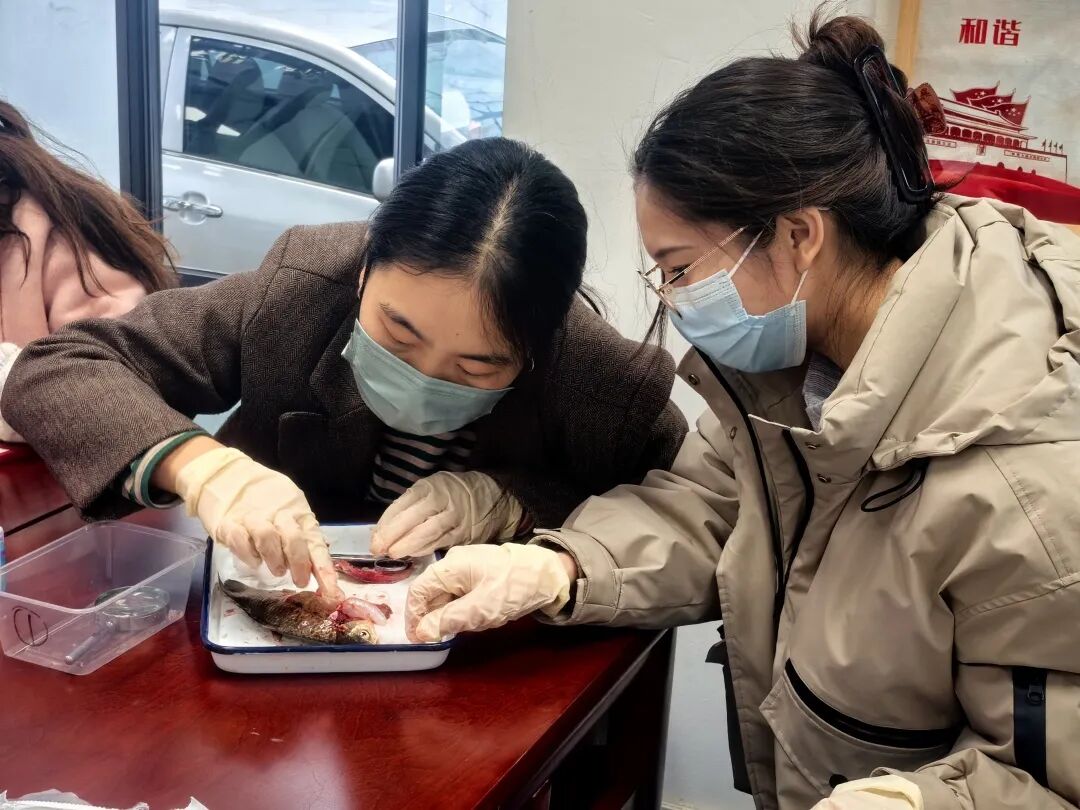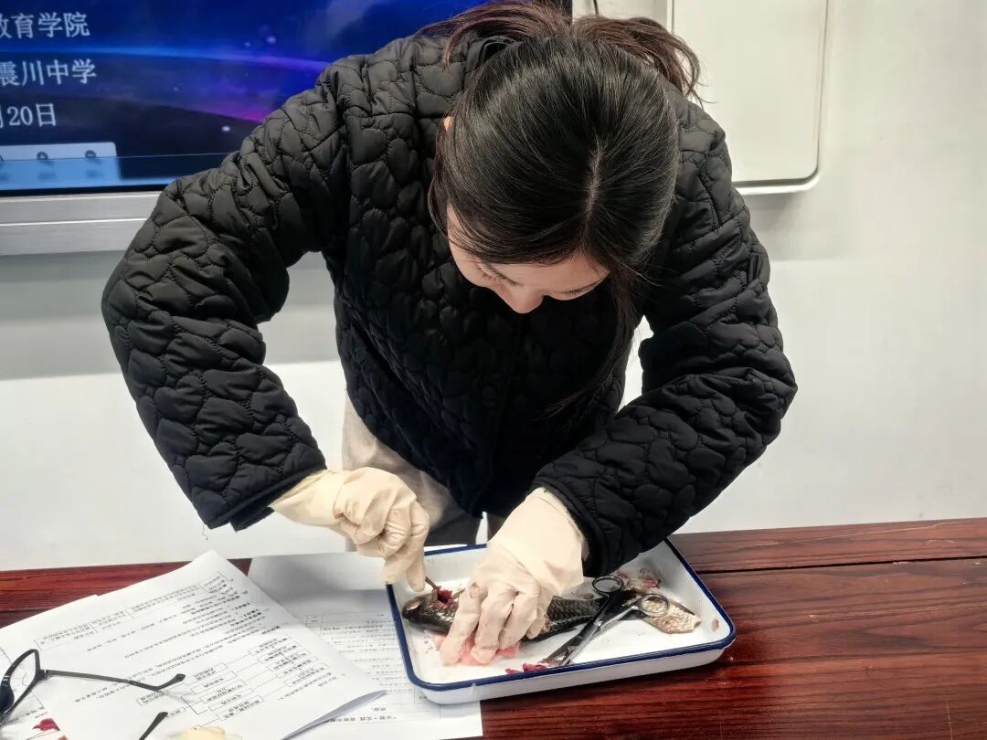 在课堂展示环节,震川中学的宋春燕老师以《鱼类的特征》为主题,通过生动的实验操作与深入浅出的讲解,展现了其卓越的教学风采。课堂上,宋老师不仅巧妙融合了生物学科核心素养,还充分展现了实验在生物教学中的独特魅力,激发了学生的主动学习热情,培养了他们的动手实践能力和科学思维。