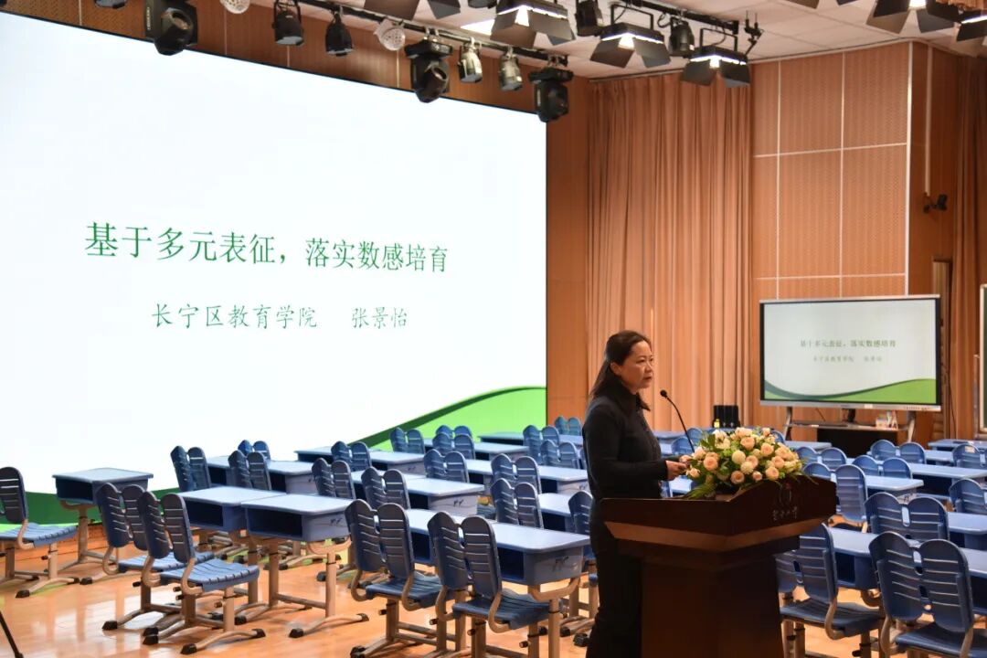 专业引领 高屋建瓴 指明方向 张景怡老师以“基于多元表征,落实数感培育”为主题,深入阐释多元表征的概念。张老师指出,低年级学生在认知构建的过程中,多元表征是重要载体。教师可借助言语表征、图像表征和符号表征,助力学生从生活中抽象出数学概念,从而发展数感与推理意识。