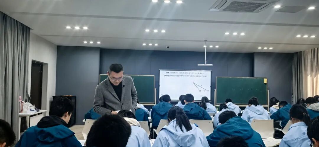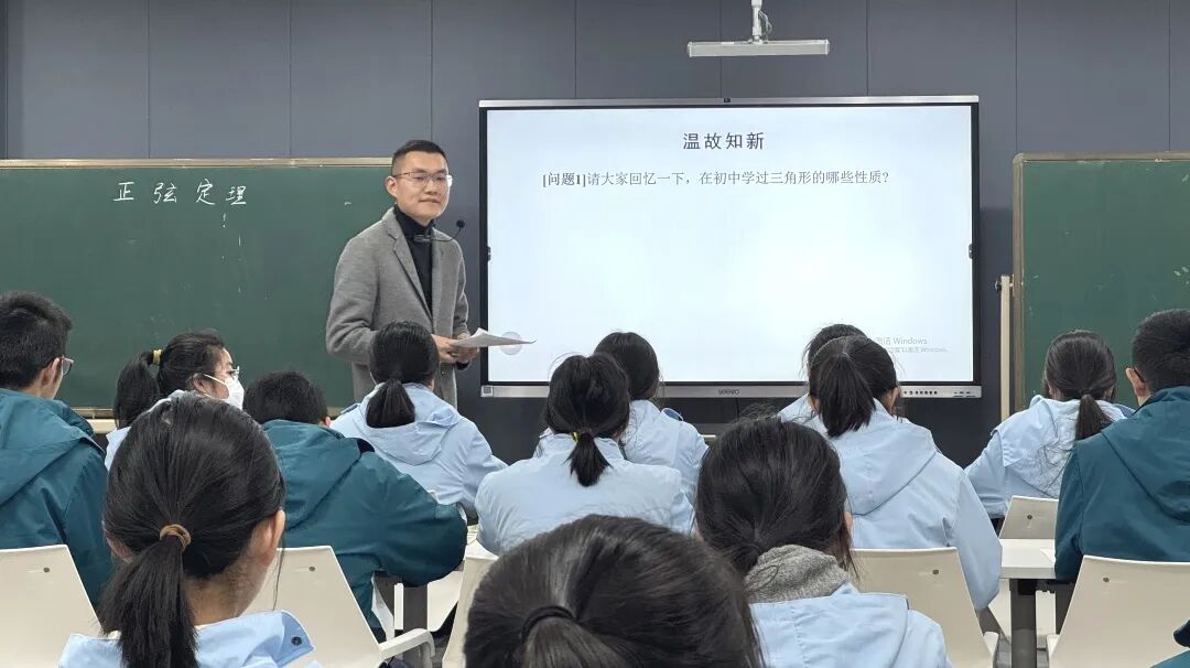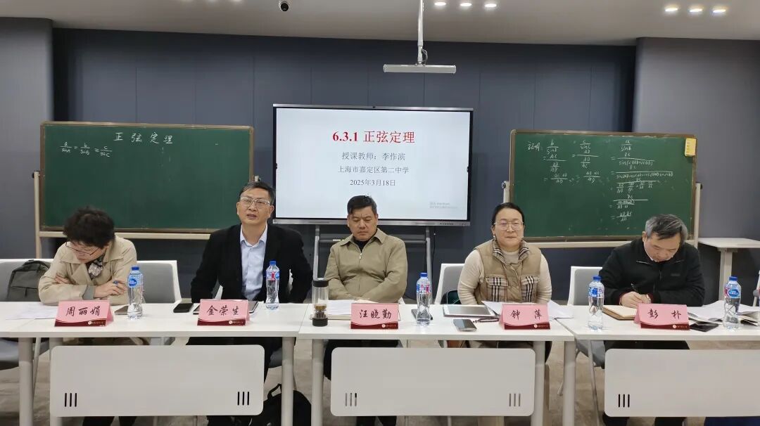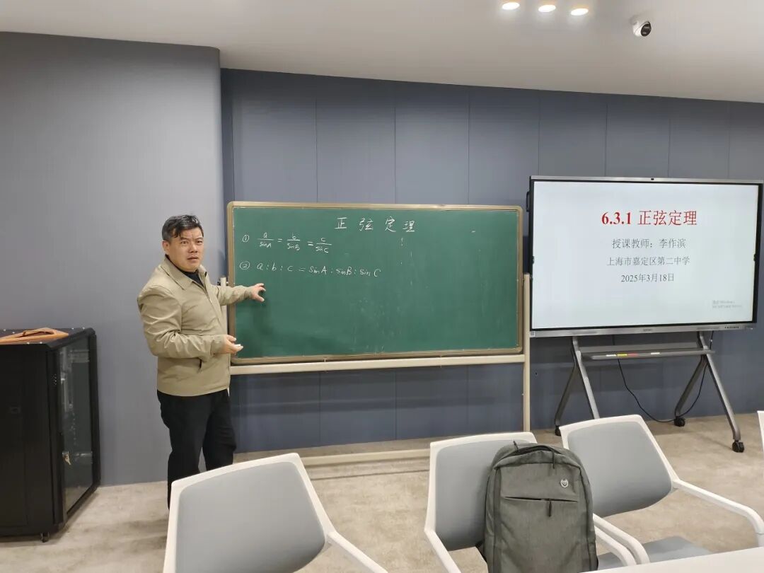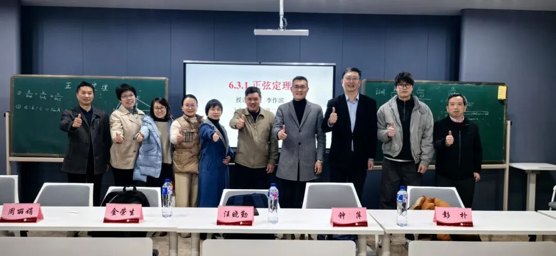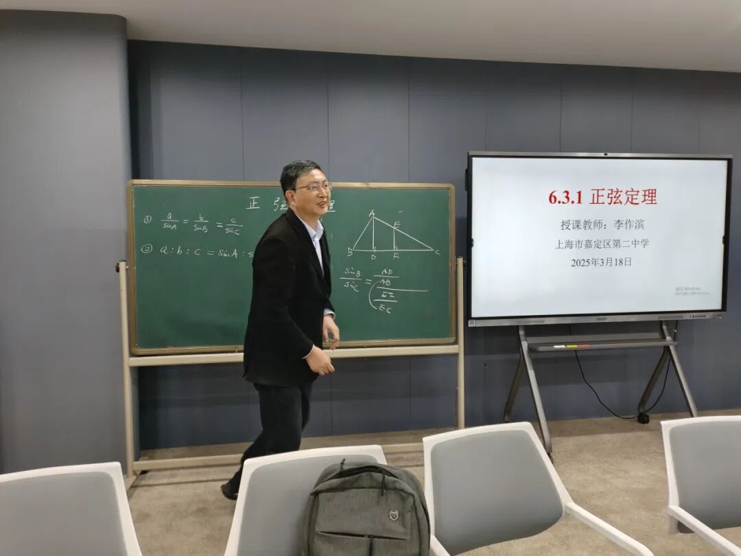 活动伊始,嘉定二中李作滨老师执教区级公开课《正弦定理》。课程以生活实际问题导入,引导学生从几何角度通过“作高法”探索定理证明。课堂采用问题链驱动模式,学生分组讨论、自主推导,既注重知识生成,又渗透文化浸润,激发多维度思考。 亮点聚焦 1.数学史点睛:引入清代数学家梅文鼎的经典证明方法,结合几何图示展现古人智慧。通过对比古今方法,学生深刻体会定理的普适性,感知数学发展的历史脉络。 2.学生主体性:践行“留白式教学”,学生主动上台板书证明过程,教师适时点拨,课堂互动热烈,思维火花频现。 3.文化浸润:以梅文鼎的证明为载体,融入“数学有源、有史、有美、有用、有德”的育人理念,强化文化自信与学科素养的双重提升。 学生反馈,想不到我国古代数学家有如此强的创新能力,梅文鼎的证明打开了同学们的思路。
