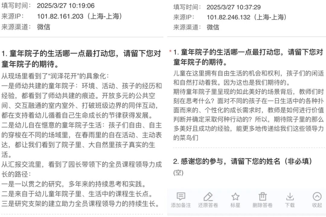 其他园长通过问卷星扫码,发表感受:校园里肆意走动的鸭群,自信快乐的儿童,温暖智慧的师幼共同生活给大家留下了深刻的印象。