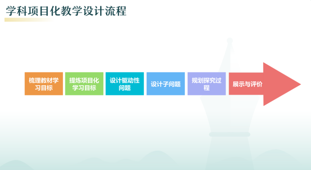 本次活动由新城实验小学叶少成老师展示了重组《科学》一年级新教材单元内容后形成的《季节的收获》项目第10课时《用不同方式呈现季节的变化》;余逸鸣老师展示了转化远东版小学《自然》三年级《池塘》单元后形成的《池塘生态保卫战》项目第3课时《探究影响池塘的因素》。 低龄学生能不能做项目化学习?年纪小,能不能坚持?过程会不会失控?会不会“有成果,没学习”?新城实小用实践证明了低龄学生也可以做项目化学习,关键是从兴趣出发,靠过程支撑,用结构管理。 新城实小小学科学教研团队总结了科学学科项目设计的一般流程(如图1),并聚焦流程中“设计驱动性问题”“设计子问题”及“规划探究过程”三个环节,即“项目任务分解”展开研究。 图1:学科项目化教学设计流程
