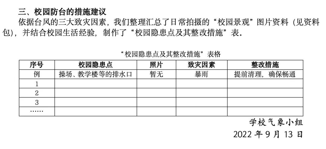 上海市长宁区教育学院高中地理教研员 杨震华 地理实践力是地理学科核心素养的重要组成部分,强调学生在真实情境中运用地理工具、地理方法解决问题的能力。 上海市嘉定区第一中学朱淑鸣老师的《基于校园资源应用的地理实践活动设计与实施研究》课题研究以校园资源的应用为切入点,探索如何在日常教学中通过校园场景设计实践活动,促进学生行为体验与知识迁移,探寻培育学生地理实践力的有效途径。研究选题来源于日常教学实践中的真实思考和问题,紧扣《普通高中地理课程标准(2017年版2020年修订)》核心素养要求,从贴近学生生活实际入手,符合当前“能力立意”的教育改革方向。 研究构建了“目标—资源—设计—实施”一体化的地理实践活动体系,其核心主要体现在三个维度:①实践力培育日常化。针对“研学活动依赖校外资源”的普遍现象,提出了“校园尺度”的实践活动设计与实施,切口小,学科特点鲜明,可操作性强,为学校日常在地理实践力培育方面提供可参考、可复制的实践模型,具有现实意义和推广价值。②校本化路径可复制。研究者在校园资源选择和挖掘过程中提炼出了“三项特性”和实施过程遵循的“四大原则”,设计和实施路径可以为同类学校在实践中提供方法论参考。③学科育人有机融合。研究过程关注校情、学情、师情,在充分利用校园资源开发实践活动的过程中,将公共安全教育、可持续发展观融入了活动设计和实施。比如结合真实情境,设计实施的“校园防台建议书撰写”活动案例,体现了知识迁移与德育渗透,即“学以致用”的育人理念。 研究者可以从以下角度做进一步思考和研究,例如尝试开发“活动实施、技能应用、素养表现”等多维度评价工具表,引入AI技术辅助数据分析,助力观察分析实践活动的开发开展,推进跨校资源协同开发,为地理学科核心素养落地提供更广泛的参考。 上海市嘉定区第一中学 朱淑鸣 基于校园资源应用的地理实践活动设计与实施研究 《普通高中地理课程标准(2017年版2020年修订)》,明确提出了四大地理核心素养。其中,课程具体目标之一为:“学生能够运用所学知识和地理工具,在室内、野外和社会的真实环境下,通过考察、实验、调查等方式获取地理信息,探索和尝试解决实际问题,具备活动策划、实施等行动能力”。中图版高中地理新教材同步设计了“实践活动”、“探究”、“实验”等多样栏目。此外,当前的考试评价也正由知识立意向能力立意转变。 一、在思考中遇见问题 明确的“双新”导向和日常教学实践让我展开了思考: 如何以实践活动为切入点,培育地理实践力等核心素养? 如何在日常教学中,真正落实地理实践活动? 在这样的思考下,我将关注点放在了校园内的实践活动:尝试通过挖掘与利用校园资源,链接教学内容与“室内、野外和社会的真实环境”;探索如何将校园资源应用于地理实践活动的开展,促使地理实践力培育在日常教学中落地。 二、在实践中展开研究 我的课题研究内容包括: 课题研究内容 三、在研究中提炼归纳 基于教学单元,匹配课程内容与校园资源,我在设计并实施的基础上,总结汇编了共计10项地理实践活动案例。根据教学需要,对应活动目的分别为新课导入、新课教学与巩固探究。 地理实践活动案例 在高一、高二分别实施活动后,基于活动结果的收集,我进行了总结反思与设计优化。在此基础上,归纳设计及实施过程中的启示,形成基于校园资源应用的地理实践活动方案。 基于校园资源应用的地理实践活动实施方案 其中,选定校园资源,要基于活动目的,关注其“三项”特性,即校园资源的可获得性、稳定性和适切性。“可获得性”即所选定的校园资源需要确保可以较为方便地获得;“稳定性”即资源能够在较长的一段时间内重复使用;“适切性”即资源本身没有概念、规范等方面的争议,使用后确保有效地服务于地理实践力培育。 以“校园防台建议书撰写”活动为例,内容复习与新授课相结合,课标及教材中对此部分内容的要求侧重成因及原理的应用。因此,本活动设计与日常课堂教学相结合,作为巩固探究。活动目的具体为:能够结合实例撰写防台建议书,完整地阐述台风的形成、影响与防灾减灾措施,提升防灾减灾意识。 所选定的校内资源中:(1)适切性:学校防汛防台应急预案,是基于本区当年防汛防台工作方案及教育系统防汛防台专项应急预案所制定,内容科学准确。(2)可获得性与稳定性:河道、外墙挂机等学校基础设施建设,短期内不会有明显变化且身处校园环境中易于观察。 资源示例:河道及校园景观 “校园防台建议书撰写”活动任务单内容(部分) 同时,要关注校情、学情与师情特点。其中,要充分结合学校特点及校内学生特点,即“校情”与“学情”。部分必修性的活动,能力要求不高,也与已有的课程内容重合度较高,可以直接结合校本课程开展。例如,我校屋顶花园建设课程,对应地理必修教材中的土壤内容。“土壤的质地及持水能力调查”活动中,就将屋顶花园的课程实验内容与教材中的活动要求相结合。 此外,还需服务教学需要、明晰步骤指令、做好活动预设、确定评价方式。其中,特别需要注意的是明晰步骤指令与做好活动预设:活动的每个步骤需要有清晰的脚手架,并且根据学生的能力差异、活动实施的软硬件条件