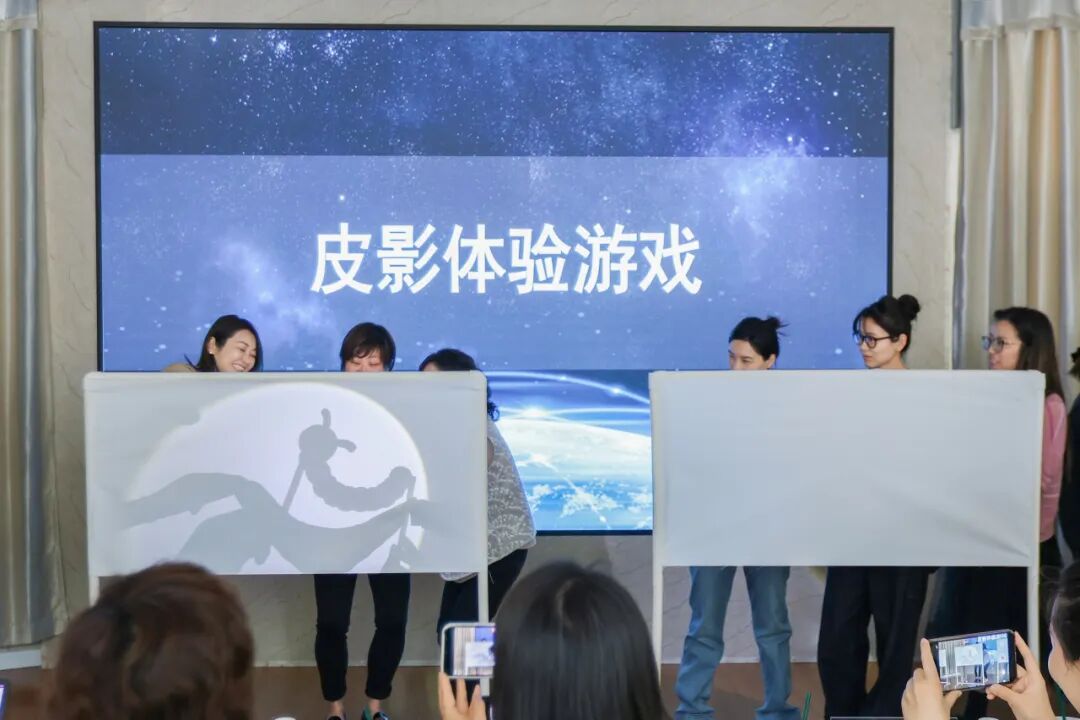 工作室成员们变身大儿童,利用幼儿自制的皮影材料小组合作,创编演绎了“毛毛虫历险记”的皮影故事。在轻松愉悦的氛围中,进一步感知体验幼儿在游戏中的有趣与无穷创意。