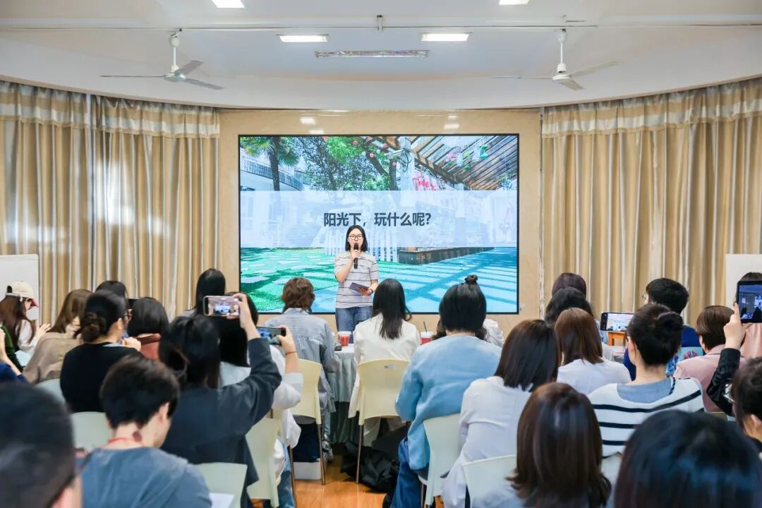 接着,大家聆听了桃园幼儿园陈一帆带来的实践案例《趣玩光影》,陈老师聚焦幼儿生活中的科学与美,从光影感知、角色创造、艺术美感等维度发现幼儿在光影游戏中的发展可能。