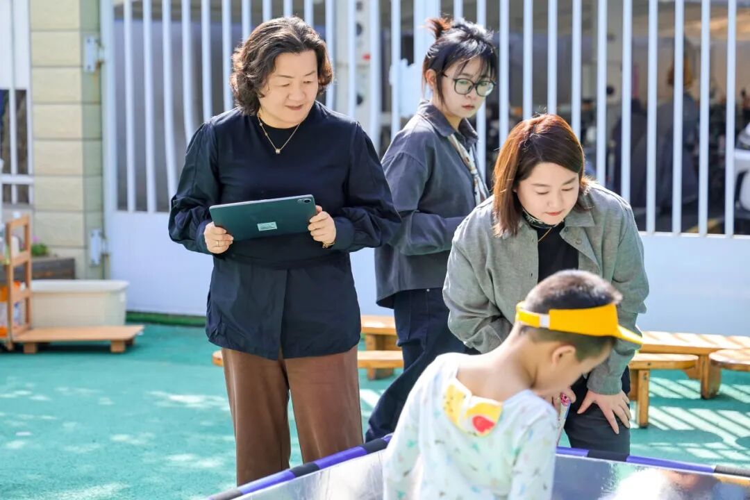 随后,工作室成员代表聚焦活动现场进行互动交流,用“高低结构嫁接”“打破固有思维”“智慧共建”“多元体验”等关键词肯定了幼儿在活动中的沉浸式探究氛围,师幼共建的户外活动空间,强调了让每一名幼儿能够生发、提炼自己的经验,获得真实的多元体验和成长经历的可贵。