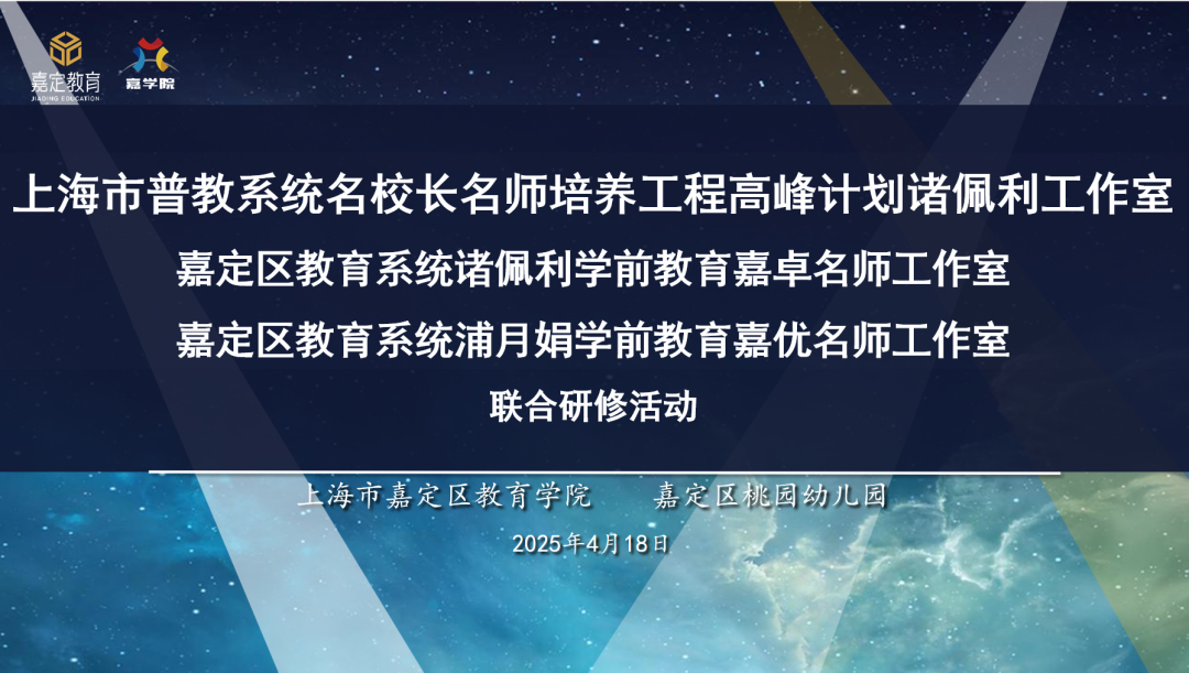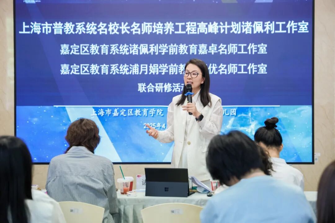 2025年4月18日,上海市第五期双名工程高峰计划诸佩利名师工作室、嘉定区“双名工程”诸佩利学前教育名师工作室、浦月娟学前教育名师工作室和上海市教育科学规划课题组在桃园幼儿园开展联合研修活动。上海市特级园长、正高级教师,安庆幼儿园园长温剑青,上海市特级教师、正高级教师,工作室领衔人、区教育学院教研员诸佩利,工作室领衔人、区教育学院教研员浦月娟,区教育学院教研员修成静,少年儿童出版社编辑王秀梅、上海教育出版社编辑时莉,区桃园幼儿园学前教育集团理事长、嘉定区桃园幼儿园书记、园长吴婷,市“高峰计划”诸佩利工作室成员、浦东名园长班园长、区“双名工程”诸佩利学前教育名师工作室成员,区浦月娟学前教育名师工作室成员,市级课题组成员教师共同参与活动。活动由市“高峰计划”诸佩利名师工作室成员王婷主持。