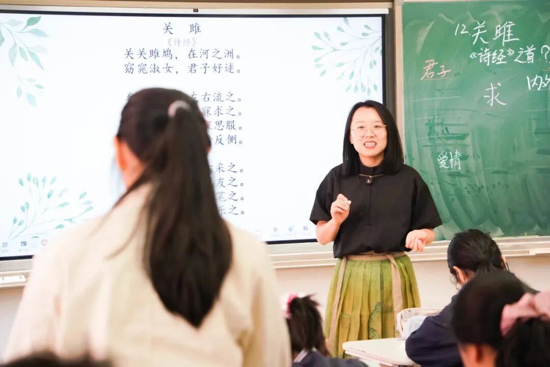 嘉定世外李黎老师首先进行了《关雎》一课的教学,展现了她对学习任务设计的思考。李老师通过分层诵读设计,逐步落实教学目标。学生在自主圈点批注与小组讨论中,对诗歌的“比兴”手法与人物形象有了更深刻的理解,挖掘出《关雎》位于《诗经》首篇的文本价值。李老师以扎实的前期教研为根基,将教学重点牢牢夯实,巧妙突破知识难点,为师生呈现了一堂优质课。而本次课堂的学生反馈与真实表现,又为后续教研提供了宝贵的案例。这一过程诠释了教研实践中“研以致用、用以促研”的要义。 随后,李黎、吴瑞两位老师分别围绕《关雎》与《核舟记》展开说课。两位老师立足文本特点与学生学情,明确教学目标,细致分析教学重难点,并设计了切合实际的教学方法与环节。吴瑞老师的说课关注自读课型与“记”的文体特征,紧扣教材编写意图,确立“探究说明顺序”等教学目标。整个教学设计思路清晰,展现出她对文言文教学的思考。 二、思与辩的深度交融:教研智慧的集体生成 说课结束后,各教研小组迅速进入热烈研讨环节。成员们结合课堂观察,对两位教师的说课与授课展开多维剖析,碰撞出思维火花,凝聚起诸多实践共识。 研讨过程中,教师们以教研实践力为支撑,不断进行“实践—反思—优化”的深入探讨。针对知识检测内容、教学环节衔接、作业分层设计等细节提出具体改进建议。这些共识既凝结了集体智慧,突出了教研实践要“从研究中来,到实践中去”。研讨成果不仅为优化教学设计提供了理论方法与技术手段,更推动教研实践力向更深层次发展,切实促进教师专业成长。 三、导与研的良性互动:专业引领下的反思提升 活动最后,嘉定区初中语文教研员姚婧媛老师以专业视角为课堂“把脉”,用精准建议为教研“赋能”。姚老师肯定了世外学校语文教研组织的显著进步。她指出本次活动借助校本教研指导记录单,精准缩小话题范围,促使分组讨论更聚焦深入,实现思维碰撞与共识凝聚,充分彰显校本教研价值。姚老师还对“AI小思教研”的首次技术应用给予积极评价,也期待技术与教研活动的持续探索。 随后,姚老师对两位教师的教学进行点评。她首先肯定了李黎老师的授课兼顾诗歌内容与语言形式,以及吴瑞老师的说课关注自读课型与“记”的文体特征。继而,姚老师立足“学生学习经历”,从多个维度提出优化建议,希望教师能够在后续改进中充分凸显文本的独特价值。 教研员指出,优质教研应立足“问题-证据-改进”闭环,既追求理论高度,更注重落地效能。无论是教案设计的明晰性、教学语言的精准度,还是技术工具的适配性,均需以学生真实学情为锚点。姚婧媛老师期待语文教研组能进一步深挖教材价值,在“小切口”中实现“大突破”,通过持续的研究反思和实践优化,推动教师的专业成长,提升学生的核心素养。