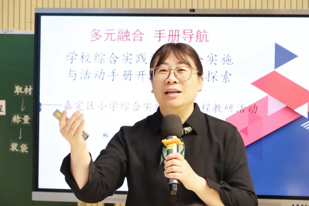 引 言 5月8日下午,嘉定区小学综合实践活动课程教研活动在同济大学附属嘉定实验小学举行。活动围绕“多元融合”、“手册导航”两大主题,通过课例展示、专题分享与专家引领三维联动,探索学校综合实践活动整合实施与活动手册开发实践。 上海市跨学科教育正高级教师、原金山区小学两类课程教研员陈金良、嘉定区教育学院小学综合实践活动课程、校本课程教研员邵红霞、同济大学附属嘉定实验小学副校长刘莉、同济大学附属实验小学副校长黄诗韵参与活动,区内各校综合实践活动教研组组长、小学两类课程中心组和青蓝教师团队成员参与活动。 一、教学展示:AI赋能 “称”做小香囊 同济嘉小综合实践活动教研组组长王艺璇执教二年级《我是博学香囊师》一课。学生们结合先前所学的中草药和香囊知识,通过对话AI智能体寻求科学的香囊配方,借助亲手制作的天平、砝码称量出精确的药材剂量,装袋完成个性化端午小香囊送给特定对象,充分体现出课堂的趣味性与多元融合性。 课后王老师以《巧手称香囊,香韵赋安康》为题进行说课与教学反思。整个项目通过“文化认知-工具复原-实践创新”的递进式学习,从“技术赋能,科学配方”“合作称量,制作香囊”“香囊展示,交流反思”三个环节,实现传统文化与现代科技的有机融合。同时还提出在未来的教学中需更强调“技术辅助”而非“技术依赖”,让学生既会使用现代工具,又懂得尊重传统智慧。