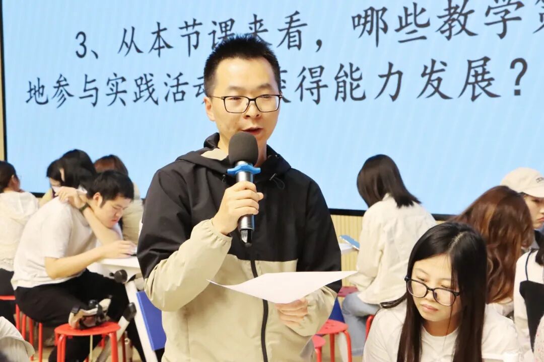 三、互动研讨,共研共进 思维的碰撞方能激荡智慧的火花。各学校综合实践教研组组长以学区为单位,围绕着如何进行课程整合(统整),开发学生活动手册事需要关注哪些实践方法,哪些教学策略能帮助学生更好地参与实践活动、获得能力发展开展了热烈的交流研讨。 封浜小学陈志强老师肯定了王老师使用AI提问环节的指导,促进了新时代小学生了解AI、运用AI的能力培养,不过课堂中还可以更多地体现学生思考问题的思维过程,通过老师一步步引导,让学生把问题逐渐精细化,在层层递进中建构起提问时的技巧与逻辑的完整性。 华旭双语李保燃老师对于王老师这节课小组合作分工明确,时刻关注低年级学生合作互助能力的培养表示赞同。同时提出,在AI提问环节中可以提供更专业的信息来源做托底,可以更注重信息来源的科学性。 嘉世云翔小学王泽宇老师认为综合实践活动课程与劳动课程融合,可以更有效地落实素养培育目标,能在有限的时间内让学生收获更多。综合实践活动学习手册是学生较好的学习支架,能让学生更流畅地表达学习过程中的收获,重视语言表达的培养。