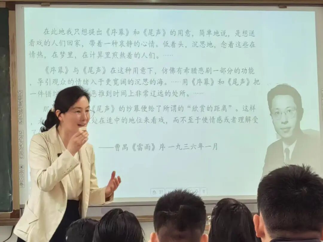 一、教学展示:从追问到觉醒的思维之旅 夏晴老师以“什么是悲剧”为起点,引导学生剥离日常语境中的“悲剧”概念,聚焦文学文本的深层意蕴。通过追问“教材中的悲剧‘悲’在何处”与“你认为这三部悲剧的结局那个更悲惨”,引导学生以《窦娥冤》《雷雨》《哈姆莱特》为锚点,逐层剖析悲剧的审美价值、伦理净化与文化意义。 课堂中,夏老师以问题链串联,引导学生在质疑与辨析中展开探究,在交流与碰撞中推动思维,如中西悲剧对比(命运悲剧与伦理悲剧之辨),并延伸至《祝福》的悲剧性探讨,激发学生对文学本质的深度反思。师生在思辨中突破表层认知,课堂学习成为一场从文本到人文的思维之旅。