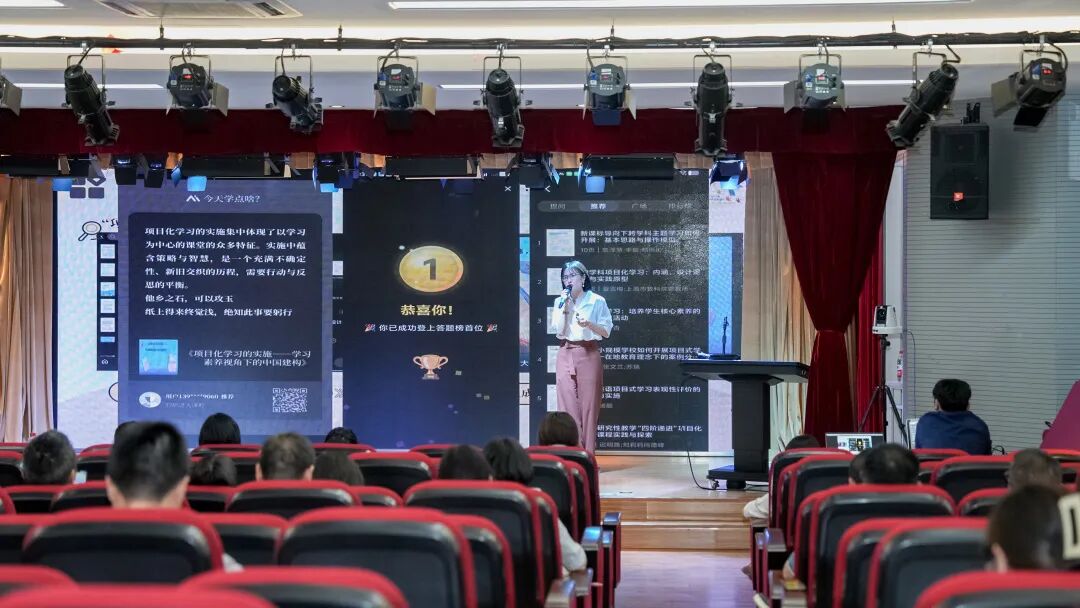 贾晓岚针对教育变革中理念落地难、资源整合难、评价转型难等痛点进行的思考、探索与突破做以“项目化学习校本教研之路”为主题的分享。学校以“为思维而教,为思维而学”为教育理念支持。构建了教育理念、内容场域、专业教研、学习评价、数字技术“五位一体”的项目化学习支持系统,形成一条从理念到行动的完整链条,让教学回归素养本位。