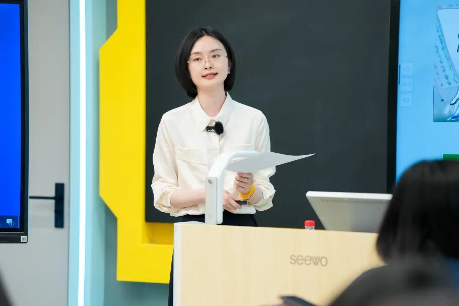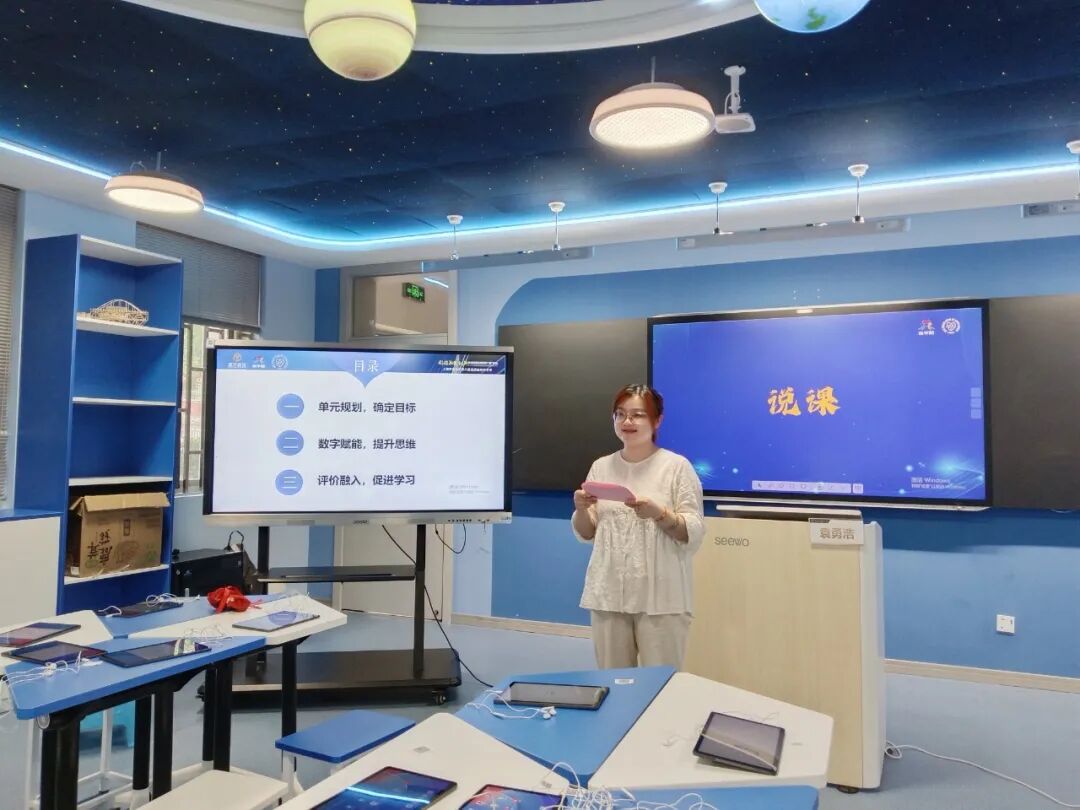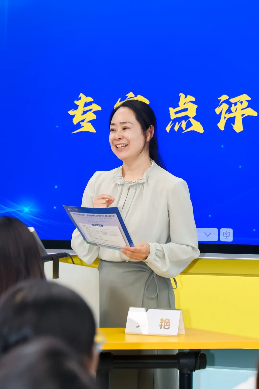 授课结束,胡徐然老师进行了说课。嘉定区教育学院小学语文教研员张艳,对授课内容和说课进行点评。张老师认为此次小学语文教学的创新实践,亮点与特色鲜明:数字技术深度融合,创新性运用 “三个助手”平台实现个性化学习,突破传统古诗教学时空限制,情境化设计符合学生认知特点,数字人王昌龄 “三段式生平呈现” 让诗人形象立体化。并提出建议深化数字化转型,升级技术应用、引入AI还原场景,利用数据驱动教学改进,在差异化教学和数据深度应用上突破,实现从“形式创新”到“质量提升”的跨越。
