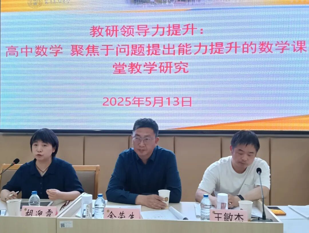 5月13日下午,嘉定区高中数学教研活动在上海市嘉定区安亭高级中学开展。本次活动由区高中数学教研员金荣生老师主持,胡迎霞、彭朴名师工作室成员以及各校高二数学教师共同参与。活动以“数学课堂中问题提出能力培养”为主题,通过课堂教学观摩、专家专题讲座、深度研讨交流等环节,共同探寻提升学生数学问题提出能力的有效路径。