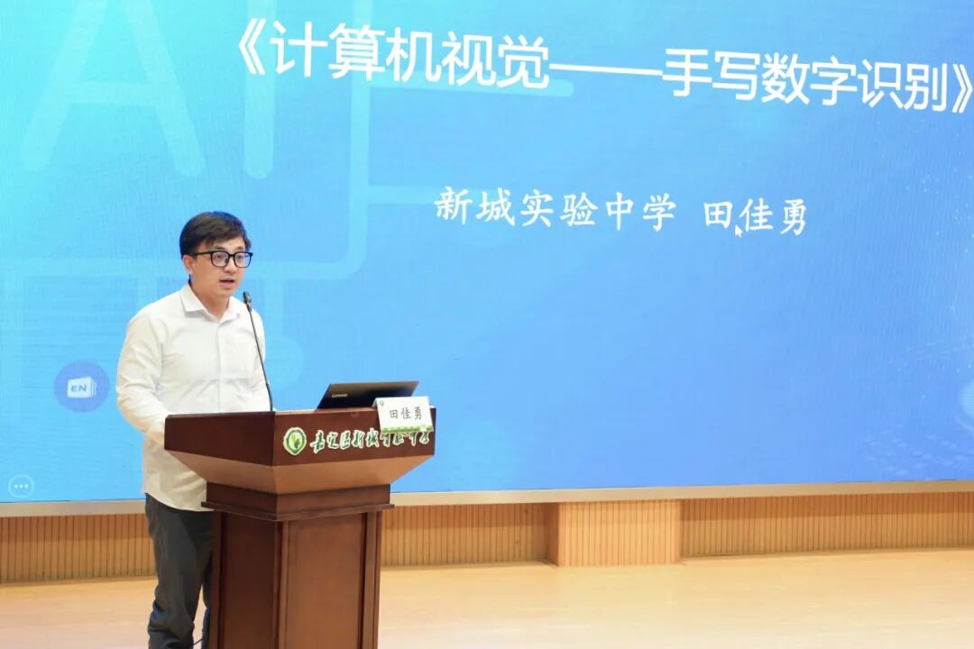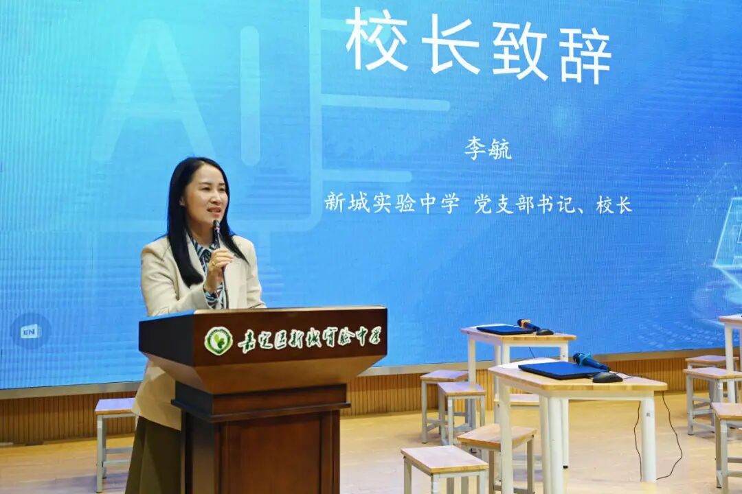新城实验中学校长李毓在本次活动致词中表示:在“十四五”教育改革深化背景下, 人工智能教育作为国家战略布局的重要环节,已成为推动基础教育创新的关键引擎。新城实验中学紧跟时代步伐,主动承担区域教研引领责任,通过承办本次人工智能教学研讨活动,展现了其在教育转型中的前瞻性与实践力。