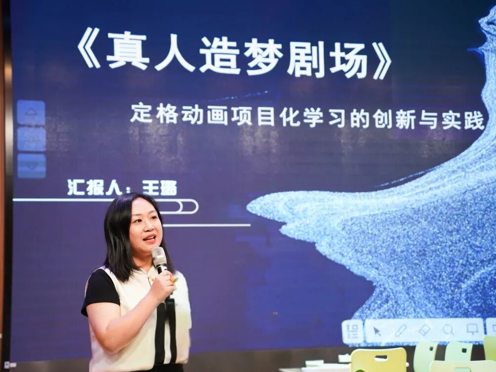 德富路小学王璐进行《真人造梦剧场——定格动画项目化学习的创新与实践》主题分享,分享美术与戏剧、信息技术融合的实践经验。通过 “职业理想定格动画” 项目,学生不仅掌握脚本编写、AI 绘图、剪辑特效等技能,更在跨学科协作中实现 “知识融会贯通”。从“手绘分镜”到“AI 生成场景”,从“角色演绎”到“音效设计”,一个个充满想象力的动画作品,展现了项目化学习对创新思维的激活作用。