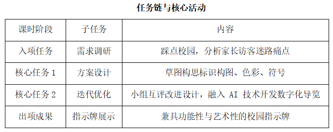 课堂是践行美术教育创新的核心场域,以真实任务驱动的学习过程,能让学生在解决问题的过程中主动建构知识,实现从“浅层认知”到“深度学习”的跨越。两节展示课基于《义务教育艺术课程标准(2022年版)》第二学段(3~5)年级“装点我们的生活与融入跨学科学习” 学习任务群,以校园实际需求为切入点,将美术知识与生活场景深度联结,不仅展现了 “做中学” 的教学理念,更呈现了项目化学习中 “任务设计—实践探究—评价反馈” 的完整闭环,为教师提供了可借鉴的课堂转型范本。