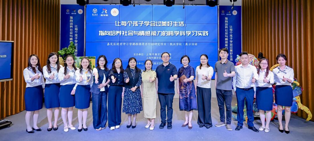 为进一步推动嘉定区提升中小学课程领导力行动研究项目区工作,5月27日下午,以“让每个孩子学会过美好生活:指向培养社会与情感能力的跨学科学习实践”为主题的课程领导力项目展示研讨活动在戬浜学校举行。上海市教师教育学院(市教委教研室)综合教研员、正高级教师张玉华,虹口区教育学院师训部主任、正高级教师杨寒凝,嘉定区教育学院副院长秦惠康、课程部主任田洁、教研员曹立、姚艳烨、兼职教研员王卡娜,嘉定区课程领导力项目市(含市院)、区种子校校长、分管副校长及学科教师代表参与活动。活动由戬浜学校副校长刘婧主持。