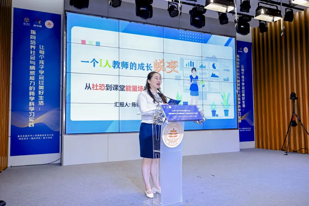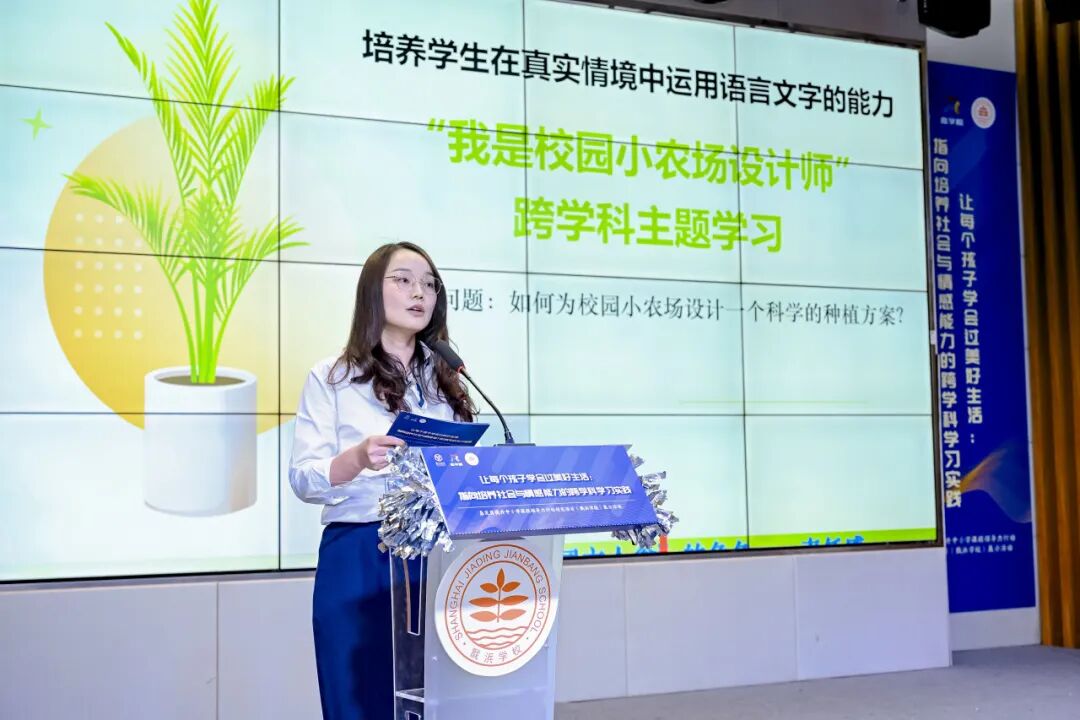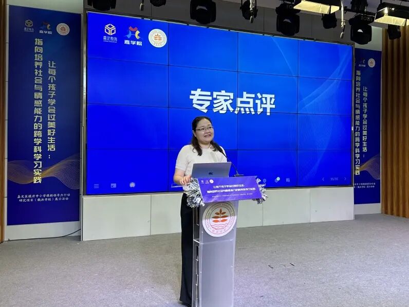 一 专家点评 张玉华高度赞扬了本场活动中所展示出的对课程领导力项目的理解。她围绕课程领导力、学生社会与情感能力两个关键词对活动进行点评。戬浜学校通过整体调研确定跨学科主题学习作为改革突破点引领方向;在推进过程中以学校课程实施方案统领,设计课程矩阵推进学校育人理念落地;这个过程中也看到了学校教师在项目中产生的变化。其次,以社会与情感能力作为切入点推进跨学科主题学习具有前瞻性与突破性,有利于培养学生情绪能力等素养。 秦惠康肯定了此次活动关注到的学生社会与情感能力对学生育人维度的具像化。从学校校长顶层设计的理想中的社会与情感能力,到课程管理者整体架构的课程框架,到教师的课程实践,一步步将理想的内容转化为学生真实的体验;活动中看到了学生的变化、体验,看到了学校教师从学生的身上感受到的成长,这个过程伴随着学校的课程深化;校长、中层、教师、教研员组成学习共同体,在专家的指导下,不断缩小从理想中的课程到学生体验的课程之间的落差。 二 “跨”课赋能,共建成长之路 管晓艳做《“跨”课赋能 育“SEL”沃土 共建美好成长路》主题报告,阐述了学校以市级课题《依托跨学科主题学习发展学生社会与情感能力的实践研究》为引领,探索“美好戬浜”学习方式变革的探索路径。学校通过“311”机制重构课程管理(三级计划、项目方案、教研组织),打破学科壁垒;以“1+1+1”校本研修(学习共同体、学科小组、跨学科项目)赋能教师成长;以“N+1”策略(兴趣驱动+素养培育)激活学生内驱力;融合科技、劳动等多元学习场域,构建社会与情感能力与跨学科学习深度融合的全域育人生态。 三 “跨”课融合,变革教学方式 朱明雯执教《我为中华节日做文创》一课,巧妙融合唱歌、对话、表达与分享等多元学习活动,以英语为工具精准解析春节文化要素,通过亲手设计春节窗花活动,实现语言能力与文化素养的深度融合。 王卡娜认为该主题活动创新性地将英语核心素养融入传统节日教学,活动构建了“古诗鉴赏-文化理解-艺术欣赏-英语表达”的完整链条,既强化了传统文化传承,又实现了语言实践与审美创造的有机统一,充分展现学科交叉的教学价值。 陈艳执教《校园小农场之堆肥工坊》跨学科主题学习活动,在堆肥装置设计中,通过科学分析、精选场地、巧妙设计结构、精心筛选堆肥原料等要素,在解决实际问题的过程中培养学生的创新思维与问题解决能力。 曹立认为课程以校园堆肥桶设计为载体,融合劳动、生物学等多学科知识,通过真实问题驱动,引导学生经历小组方案设计、展示评价与反思改进等过程,达成跨学科能力及劳动素养培育的综合育人目标。 汪锋执教《基于碳中和理念制作减碳器》跨学科主题学习活动,引导学生通过小组合作探究不同物质吸收CO₂的能力,设计“简易吸碳器”对空气中CO₂的捕捉,理解科学探究的本质,形成运用多学科知识、技术及工程融合解决问题的系统思维。 姚艳烨认为该主题活动以真实情境切入,融合化学、科学、劳动等学科素养,培养学生问题解决的关键能力。学生通过控制变量法优化吸收剂效能与流体力学模型,强化科学探究与工程思维,深化碳中和理念。项目注重技术可行性与成本平衡分析,引导学生直面现实挑战,通过协作与迭代改进,培养科学态度与环保责任感,为学科融合育人提供优秀范本。 张麒执教《你的旅游我设计》跨学科主题学习活动,以小组为单位围绕“景点选择要素”展开讨论,从自然环境、人文背景等多维度切入,筛选代表性景点,并借助数智化软件进行验证,精准把控数据的可靠性,提升数字化工具的应用技能。 田洁认为该主题活动以学生家乡为背景,巧妙融合地理与信息科技学科内容,通过自主调研激发学生多元认知,并借助数智化工具、虚拟现实及结构化评价表推动协作聚焦。课程从个体思考到团队共识,辅以评价单与情绪管理策略,有效提升学生的区域认知、数字化协作、社会与情感能力。 四 “跨”课生长,师生双向奔赴 张麒做《一个斜杠教师的跨界绽放:从讲台到人生的无限可能》主题交流,从小学到中学的岗位跨越、从教师到组长的角色升级、从课程到方案的体系建构三次关键经历,展现了学校“全人培养”理念下教师在多岗位、多角色、多视角的多元成长与教育生态的良性循环。 陈艳做《一个i人教师的蜕变:从社恐到课堂能量场构建者》主题交流,通过与学生破冰、与同事协同、向专家取经、与AI共舞的四次对话实现蜕变,从社恐成长为课堂能量场构建者,彰显了教师专业成长中对话与协作的力量。 陈亚萍做《一位高级教师的破局思维:在经验之上重构教育的可能性》主题交流,以跨学科项目“校园小农场设计师”为载体,通过情境创设、规则制定等策略培养学生责任感,展现了核心素养导向下语文教学的创新与实践突破。 王伟做《一位金牌教练的制胜法则:从解题到解人生的进阶》主题交流,揭秘“四步进阶训练法”,通过点燃兴趣、突破思维、强化团队、挑战升级,将学生从怯懦培养成OM赛场上的自信创客,彰显了社会与情感能力与综合素养的融合。 现场戬浜学校学生以戏剧表演等形式进行OM头脑奥林匹克长期题比赛的现场演绎,体现学生在团队协作、创新思维与问题解决等方面的能力,生动诠释了学生