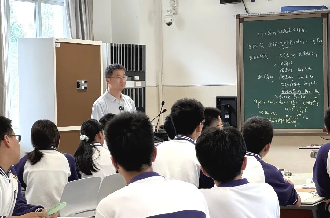 本次活动以一堂生动的公开课拉开序幕。上海大学附属嘉定高级中学的顾成龙老师带来了高一数学《4.3.1数列的概念与性质》示范课。顾老师以“深挖数学概念的内涵与外延”为核心,巧妙引入人工智能工具“豆包AI”,打造了一堂启发思维、互动探究的创新课堂。