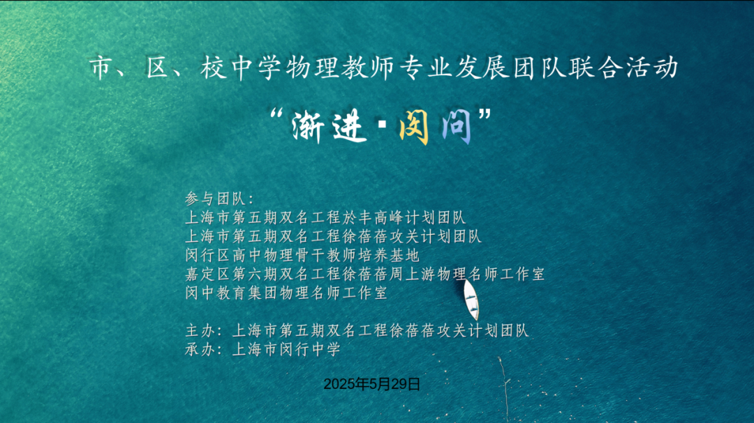 为推动高中物理教与学方式变革,落实学科核心素养培养,结合上海市“渐进・融合”教研主题,徐蓓蓓攻关计划团队策划了系列“渐进”主题活动,搭建跨区域物理教育工作者交流平台。 5月29日,上海市第五期双名工程徐蓓蓓攻关计划团队联合於丰高峰计划团队、闵行区高中物理骨干教师培养基地、嘉定区徐蓓蓓周上游物理名师工作室、闵中教育集团物理名师工作室,在闵行中学开展“渐进・闵问”主题联合教研活动,聚焦提出问题、质疑创新。华东师范大学胡炳元教授作为徐蓓蓓攻关计划导师出席了本次活动。